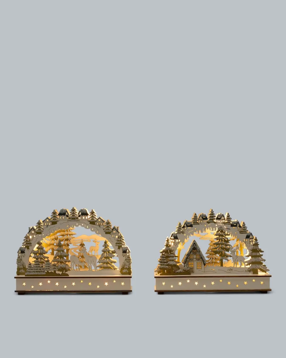 Lieferumfang: | 2x Lumesso Schwibbögen mit LED-Beleuchtung (2 versch. Motive) | |