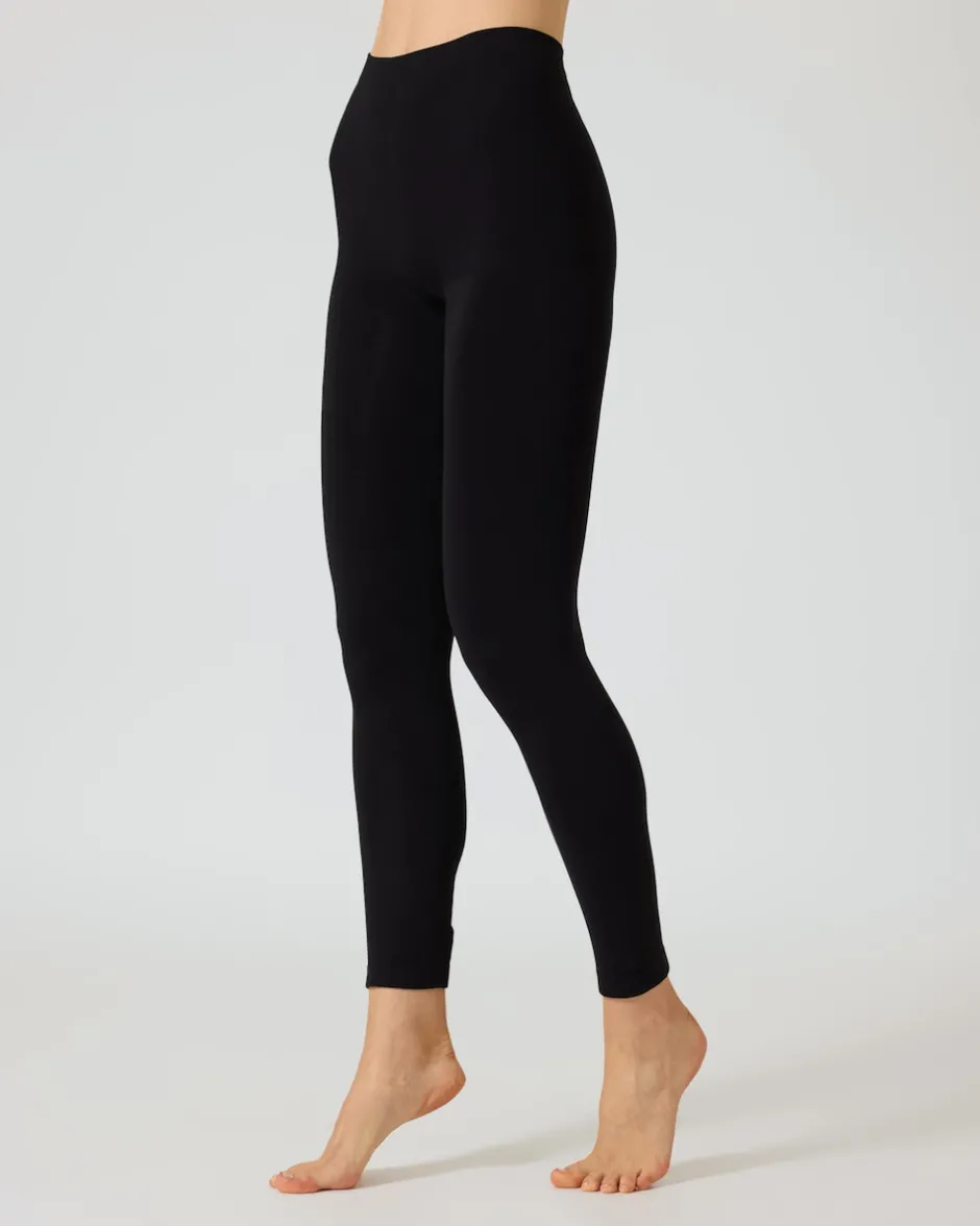 Sie lieben elastische Leggings zu Ihren Outfits? Dann kommt hier das perfekte Modell aus dem Hause Pfeffinger: Die schwarzen Leggings bieten besten Tragekomfort und obendrein einen genialen Stützeffekt, sodass Ihre Figur im Handumdrehen optimiert ist. Der feste Stoff formt tolle Beine und einen knackigen Po. Die Leggings bleiben auch bei starker Dehnung blickdicht, sodass Sie sich frei bewegen können. Der Bund sitzt leicht unterhalb der Taille und verpackt so etwaige Pölsterchen perfekt.