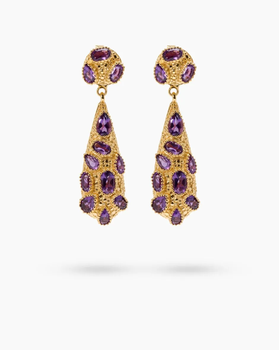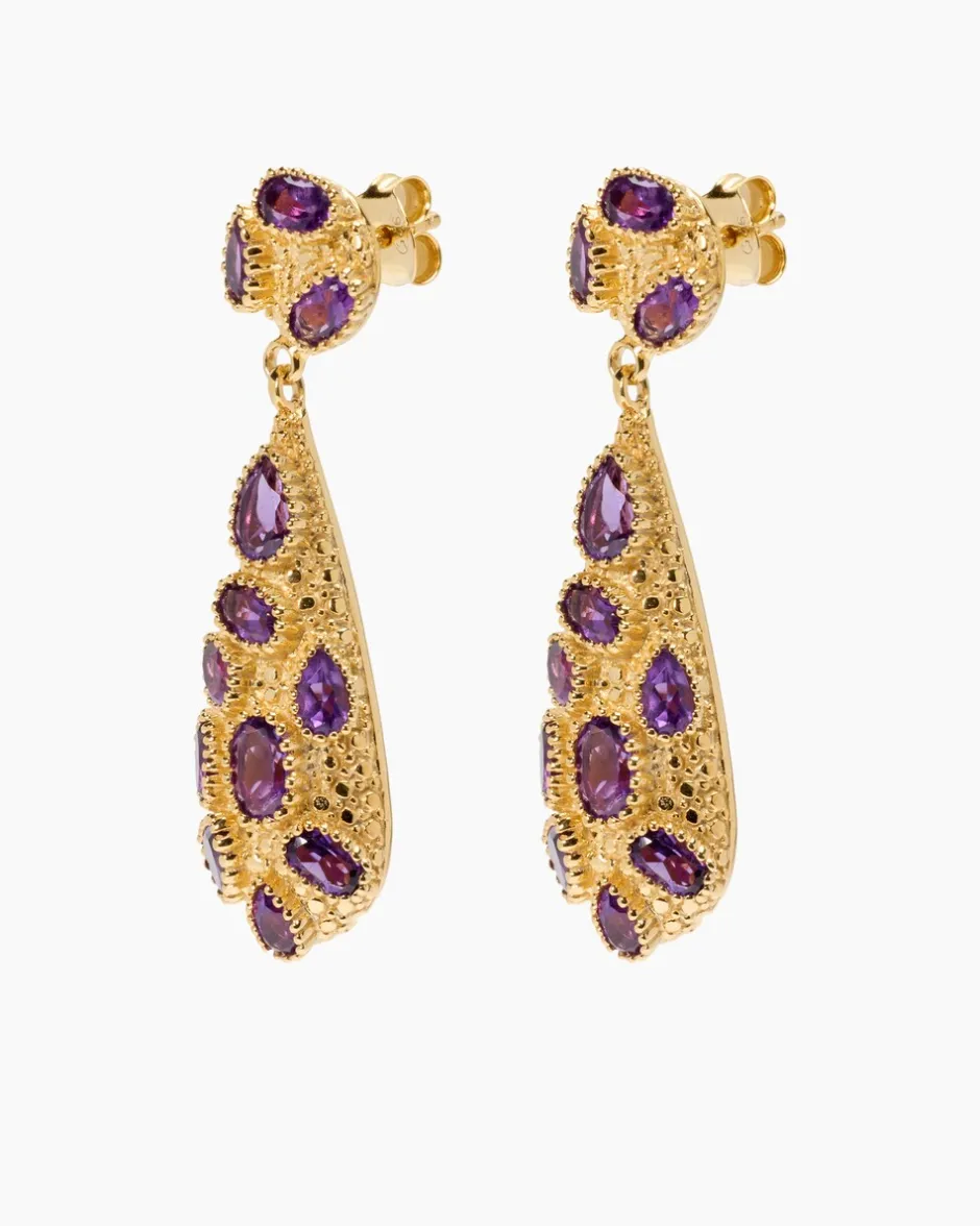 Lassen Sie sich von unseren Ohrsteckern aus 925er Sterlingsilber verführen. Das Accessoire ist liebevoll gelbvergoldet und hochglanzpoliert. Mit 24 facettierten Amethysten in leuchtendem Lila, in ovaler und tropfenförmiger Form, strahlen diese Schmuckstücke pure Raffinesse aus. Jeder Stein, meisterhaft in Krappenfassungen gefasst, entfaltet ein faszinierendes Funkeln mit insgesamt ca. 6,60 ct. Das edle Design macht diese Ohrstecker zum perfekten Begleiter für jeden Anlass – von elegant bis alltäglich. Sicherer Halt dank hochwertiger Ohrmuttern rundet das luxuriöse Erlebnis ab. Setzen Sie ein Statement mit diesem einzigartigen Schmuck.