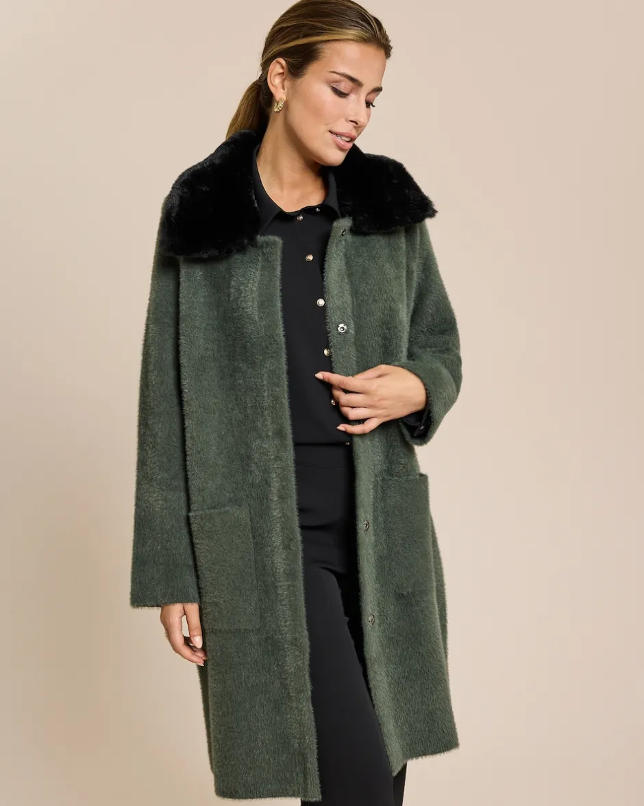 Luxuriöser Strickmantel mit abnehmbarem Kragen