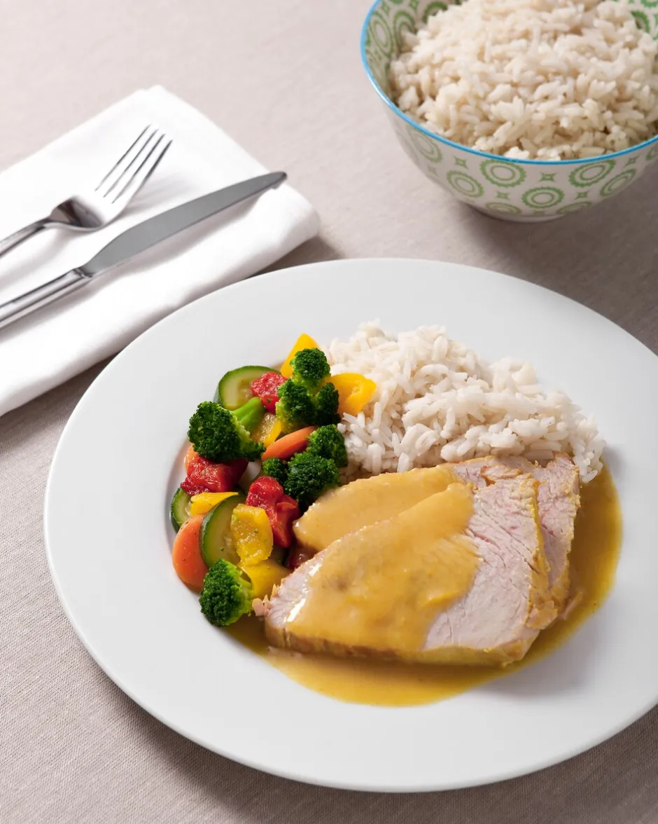 Zubereitungshinweis: | Beutel im Wasserbad bei 75 – 80 Grad 45 Minuten erhitzen. Beutel aufschneiden , Soße abgießen kurz aufkochen, Fleisch in Scheiben schneiden. Servieren. Kombinieren Sie zum Beispiel Reis oder Cous Cous dazu. |