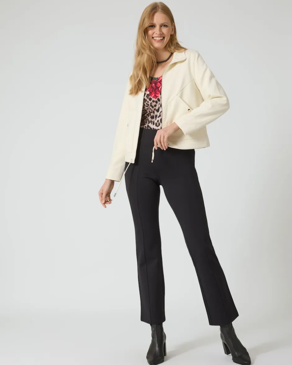 Ist diese Jacke nicht bezaubernd? Aus weichem Wildlederimitat und in modischer Optik, ist diese Jacke mit coolem Stehkragen ein echtes Must-have, das Sie sich nicht entgehen lassen sollten. Der Fashion Hit wird mit einem Reißverschluss verschlossen und kann mit dem Tunnelzug am Saum schick auf Figur gebracht werden. Schräg aufgesetzte Taschen mit Nietenbesatz setzen einen trendigen Akzent.