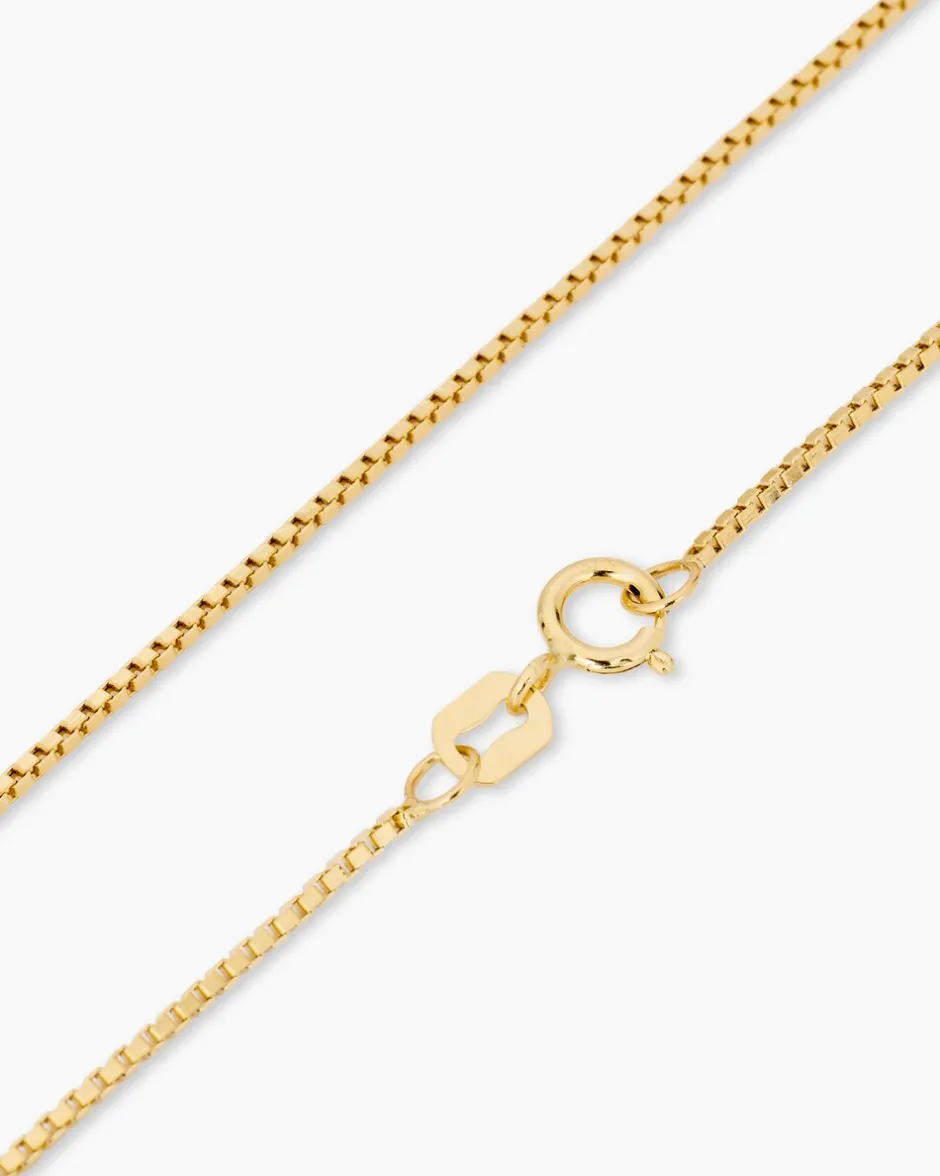 Das Sternengold Basic-Schmuckstück steht Ihnen in drei verschiedenen Gelbgoldvarianten zur Verfügung: Gelbgold 375, Gelbgold 585 und Gelbgold 750. Alle natürlich mit einem Hochglanzfinish versehen. Die edle Venezianerkette peppt jeden Look auf und sollte in Ihrer Schmuckschatulle nicht fehlen. Die Venezianerkette schmiegt sich apart um Ihren Hals und überzeugt dank Hochglanzfinish mit einem glamourösen Schimmern, das Ihr Dekolleté erstrahlen lässt. Sie können das elegante Accessoire solo tragen werden oder in Kombination mit anderen Goldketten in verschiedenen Längen. Sie können den Goldschmuck auch mit Anhänger tragen. An diesem Klassiker werden Sie mit Sicherheit viel Freude haben.