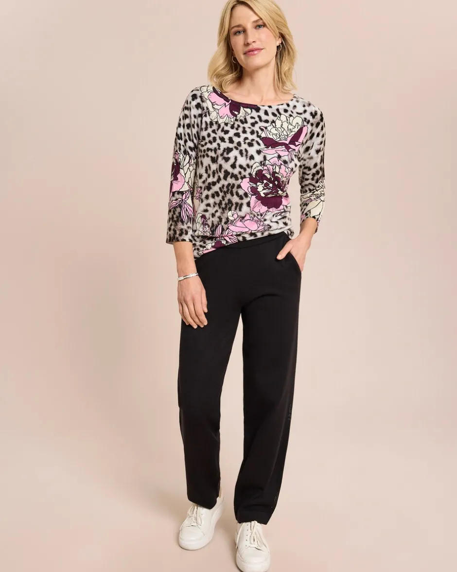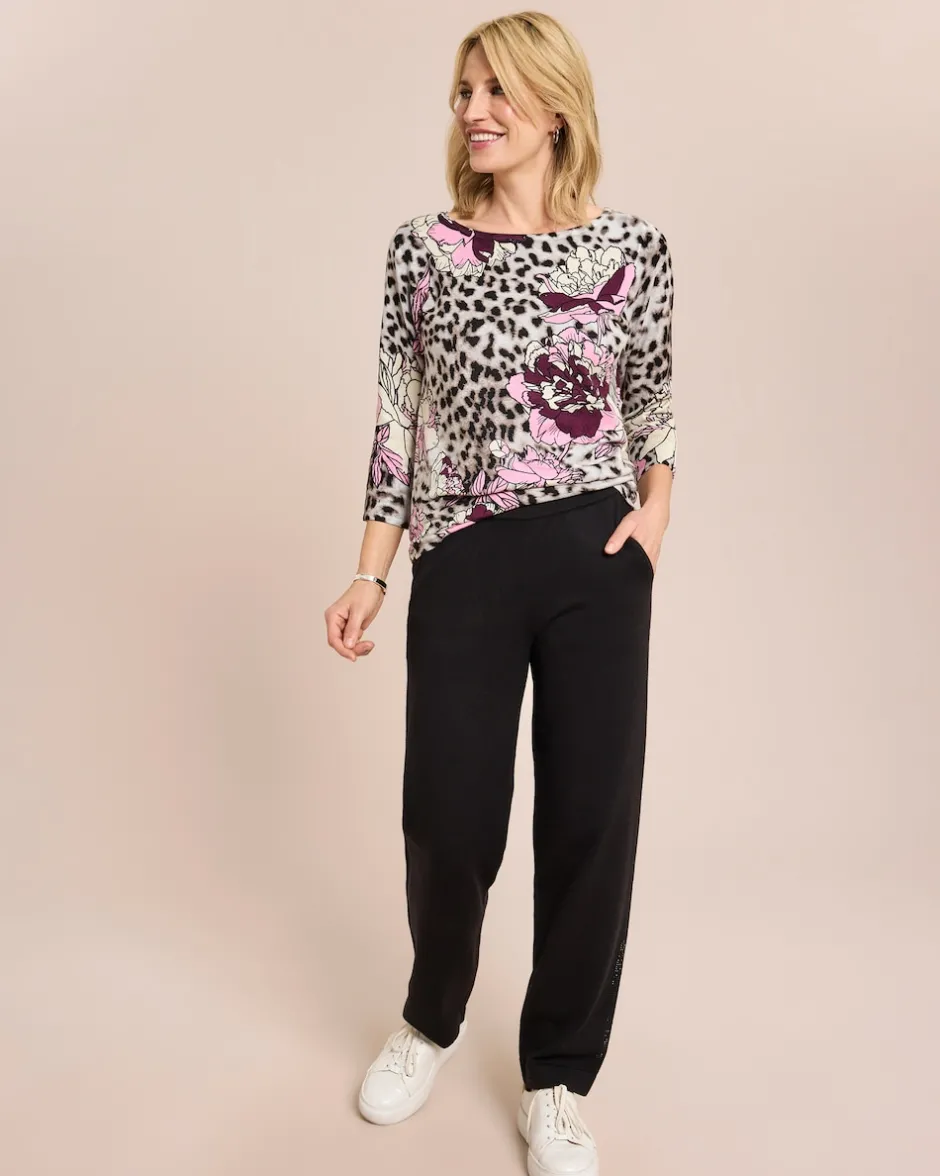 Ausdrucksstarker Pullover mit Leoparden-Blüten-Muster