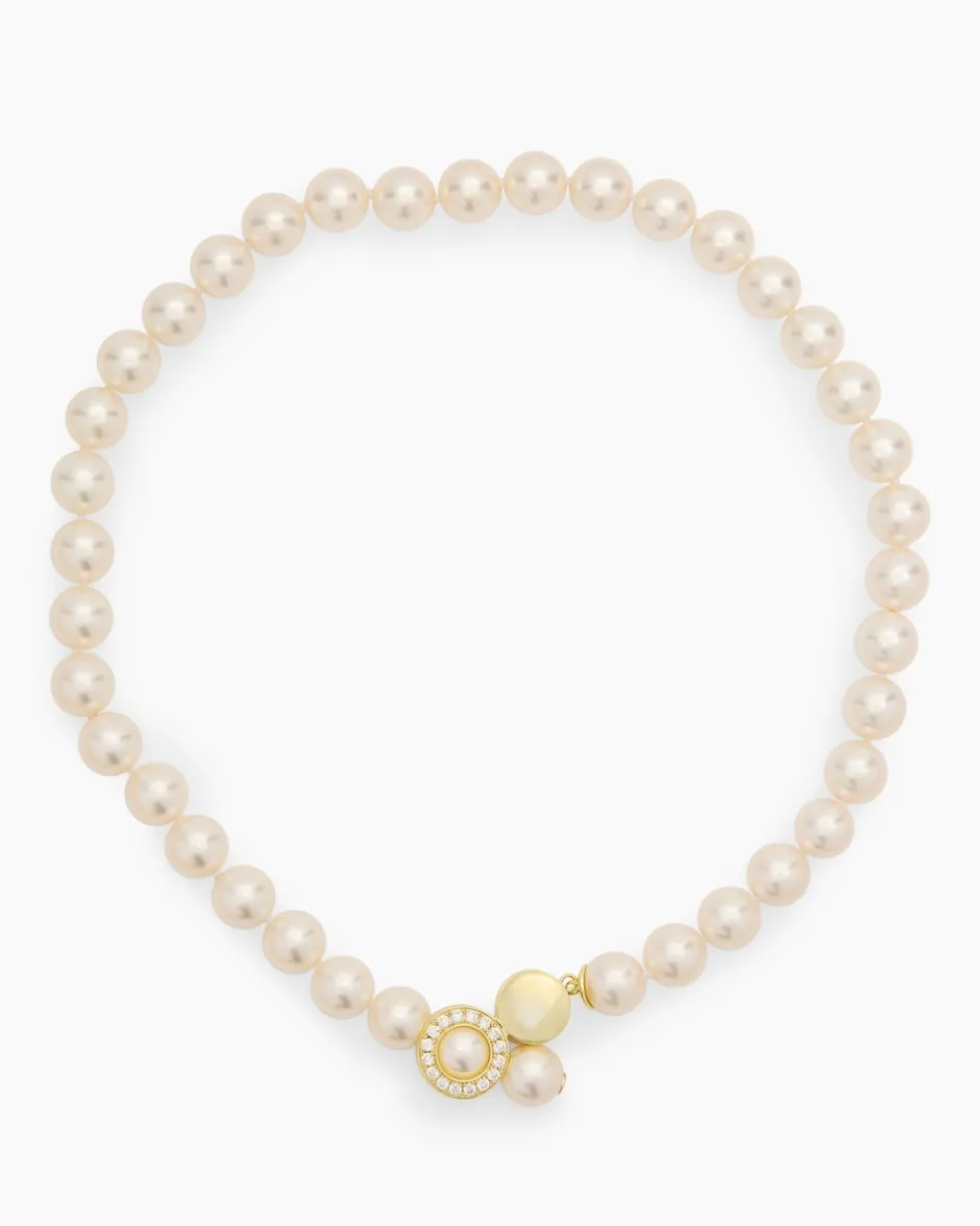 Hier erwartet Sie ein herrliches Perlen-Collier aus der Linie „Pfeffinger Glanzstücke“, das durch die imposante Größe der Perlen mit einer eindrucksvollen Präsenz überzeugt. Das Schmuck-Accessoire ist 45 cm lang und wird mit einer Schnappschließe aus 925er Sterlingsilber geschlossen. Das Collier besteht aus weißen Muschelkernperlen. Am Verschluss ist ein rundes Zierelement angebracht, das mit 32 Zirkonia im Pavé besetzt ist. Die Steine versprühen bei jeder Ihrer Bewegungen ein nobles Glitzern.