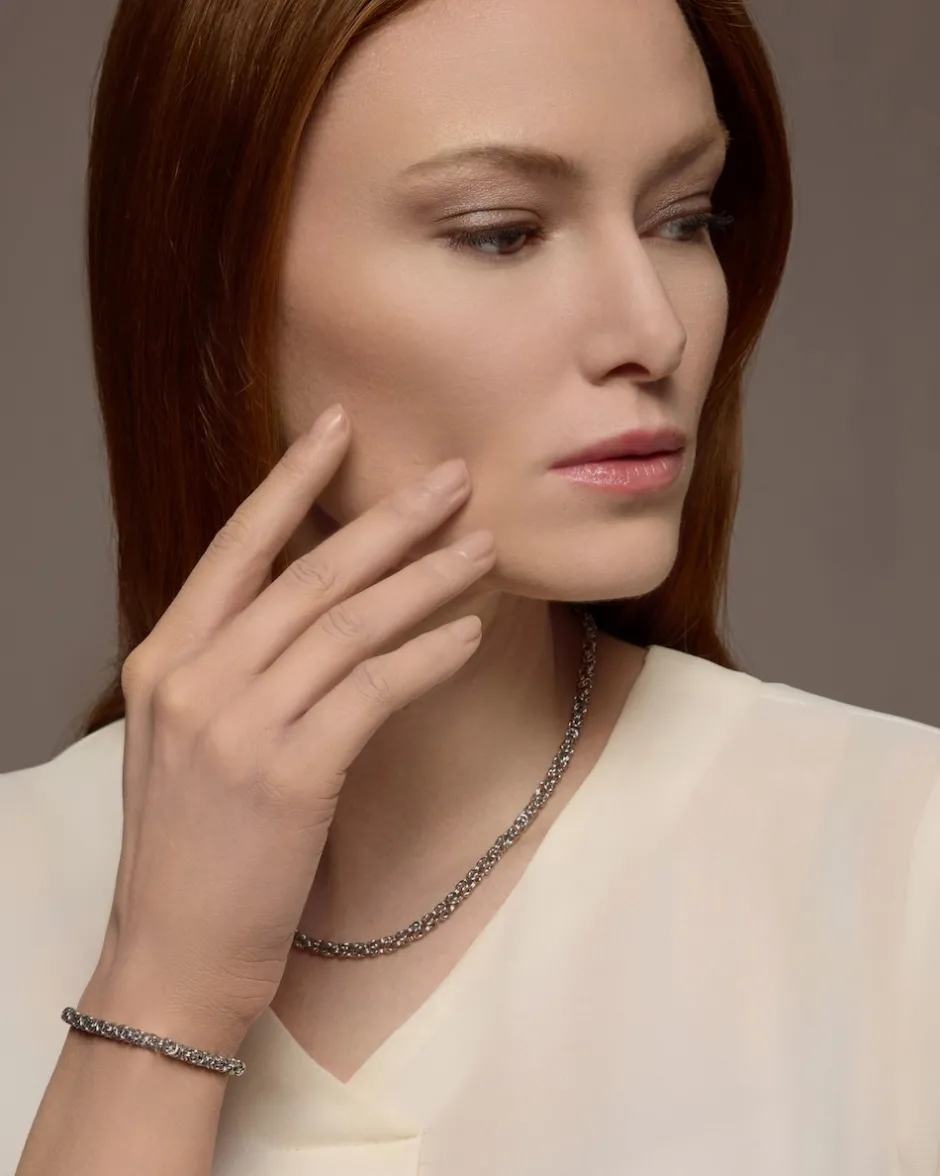 Das Armband ist aus hochglanzpoliertem Silber 925 gearbeitet und steht Ihnen rhodiniert in kühl-eleganter Weißgoldoptik und gelbgoldplattiert mit warmem Goldschimmer zur Verfügung. Das Armband ist im Königsketten-Design gestaltet und wirkt überaus elegant und stilvoll. Bei Königsketten sind die einzelnen Ringe raffiniert ineinander verwoben, sodass eine kompakte Kette mit einer stattlichen Breite entsteht. Trotz seiner Kompaktheit legt sich das Armband leicht und flexibel um Ihr Handgelenk und wird mit einem sicheren Karabiner fixiert.