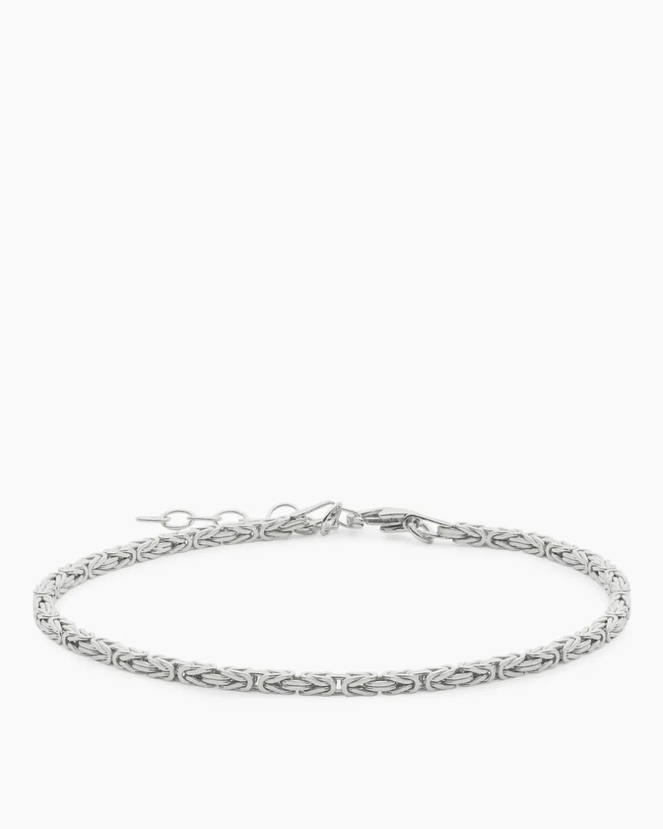 Bei einer Königskette sind die einzelnen Ringe raffiniert ineinander verwoben, sodass eine kompakte Kette mit einer stattlichen Breite entsteht. Trotz ihrer Kompaktheit legt sich die Kette flexibel um Ihren Hals, bzw. Ihr Handgelenk.