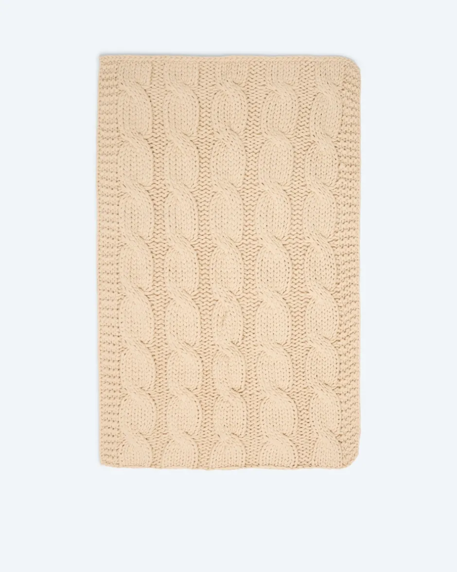 | Material: | 100% Acryl-Grobstrickdecke mit Zopfmuster | |