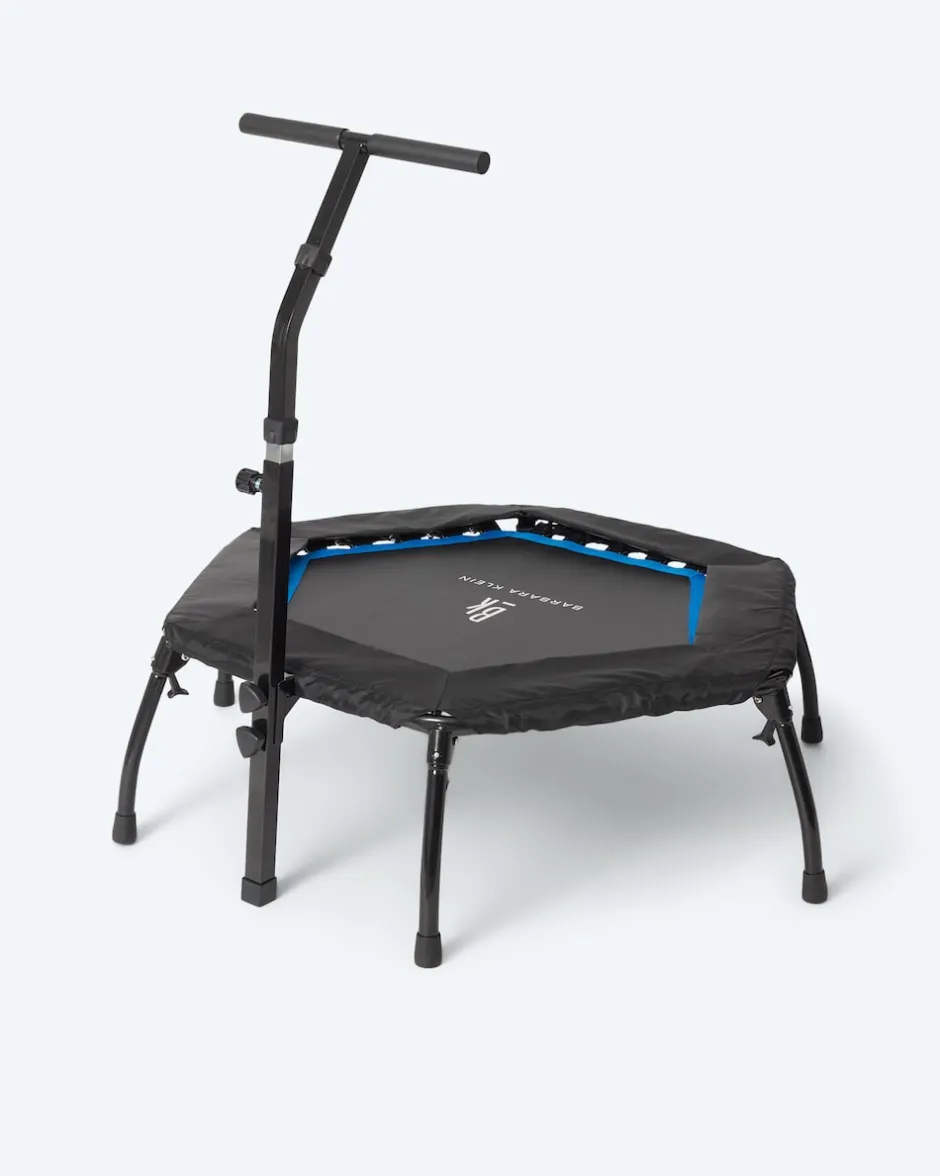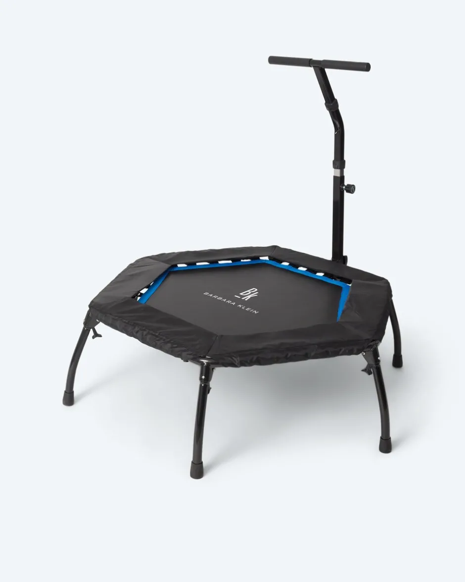 Fit und in Form dank Trampolin – und das mit jeder Menge Spaß. Mithilfe des Trampolins trainieren Sie Ausdauer, Kraft, Beweglichkeit und Balance. Dank Haltegriff trainieren Sie sicher und haben zudem mehr Übungsoptionen. So erleben Sie Abwechslung bei der Trainingsroutine und können sich zugleich kontinuierlich steigern. Sowohl der Haltegriff als auch die Füße sind klappbar, damit ist Ihr Trampolin nach dem Training schnell wieder aufgeräumt.