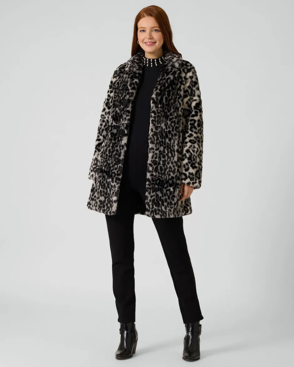 In dieser Webpelzjacke sind Sie kuschelig warm eingepackt. Die Jacke in Pelz-Optik mit Allover-Animalprint ist mit einem Hemdkragen ausgestattet und wird mit Knöpfen verschlossen. In den Seitentaschen frieren Ihre Hände nicht. Die attraktive Länge schmeichelt Ihrer Figur und streckt optisch. Sie können den Fashion Hit zu verschiedenen Outfits kombinieren und Ihrem Styling mühelos eine luxuriöse Note verleihen.
