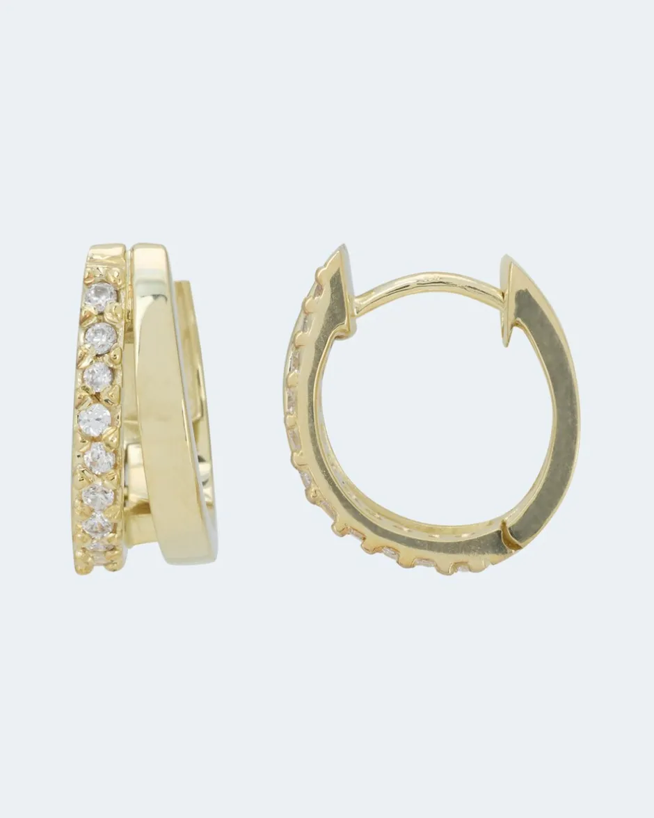 Die raffiniert zweigeteilten Klappcreolen sind aus hochglanzpoliertem Gelb- oder Weißgold 585 gefertigt. Sie sind außerdem mit je elf weißen Brillanten in SI-Reinheit verziert. Die runden Brillanten sind im Brillantschliff veredelt und funkeln zauberhaft. Die glitzernden Brillanten haben 56 Facetten und eine Tafel. Stellen Sie sich diesen luxuriösen Rahmen für Ihr Gesicht vor, der Ihren Teint zum Strahlen bringt. Außerdem haben die Creolen die perfekte Größe, um sie bequem jeden Tag zu tragen.