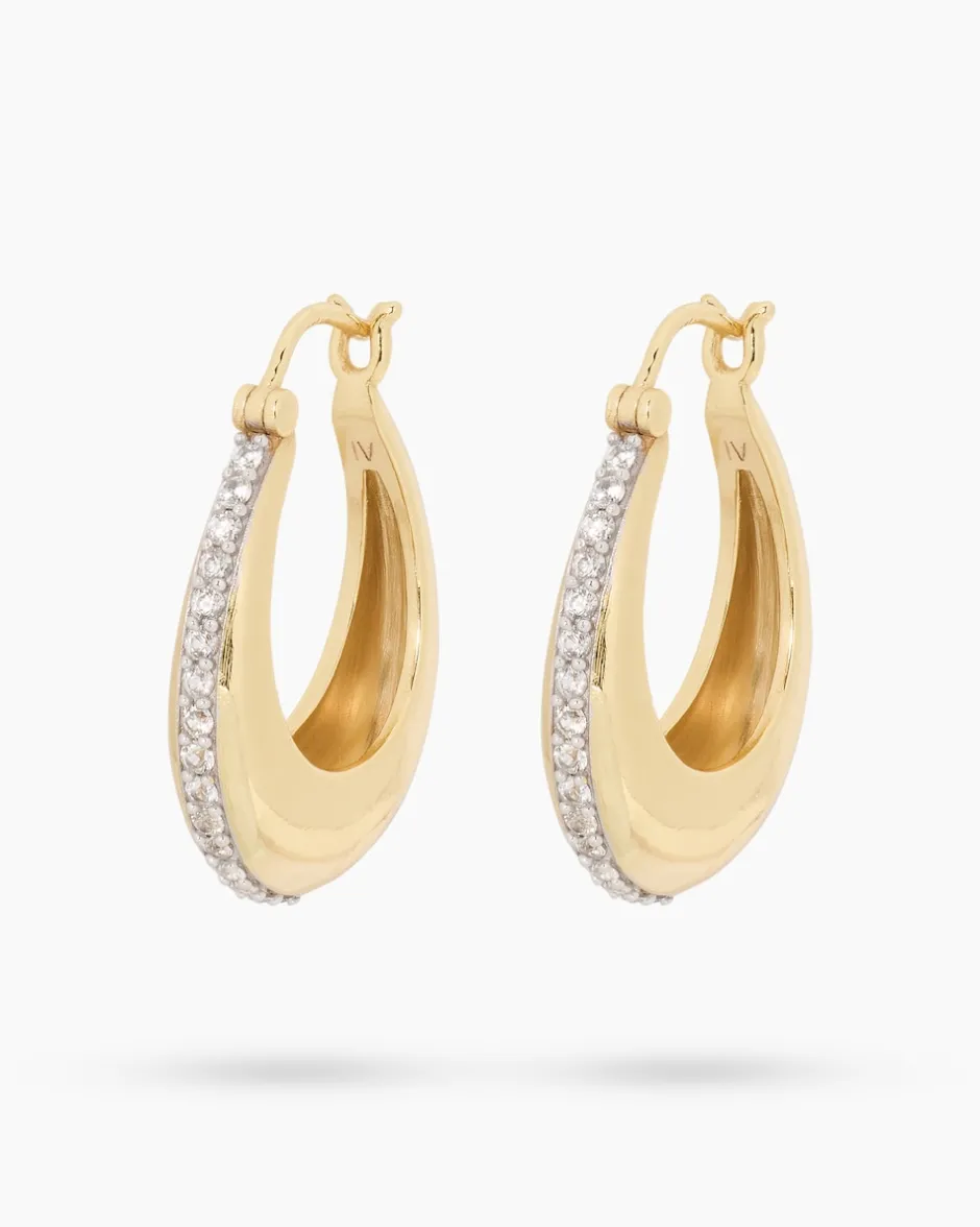 Mit Creolen liegen Sie immer richtig. Und wenn sie dann noch mit funkelnden Zirkonen verziert sind, sollten Sie zugreifen. Die Creolen sind aus Bronze in Gelbgoldoptik, das dank der Hochglanzpolitur mit einem warmen Goldschimmer begeistert. Die kleinen Creolen sind am äußeren Rand mit je 16 weißen Zirkonen ausgefasst. Die runden Zirkone sind im Facettenschliff veredelt und glitzern in Krappen gefasst in einem reinen Weiß. Ein faszinierender Kontrast zur warmen Gelbgoldoptik. Verschlossen wird Ihr neuer charismatischer Schmuck mit einem bequemen Bügelverschluss. Das perfekte Accessoire zu modischem Chic oder einer edlen Abendgarderobe.