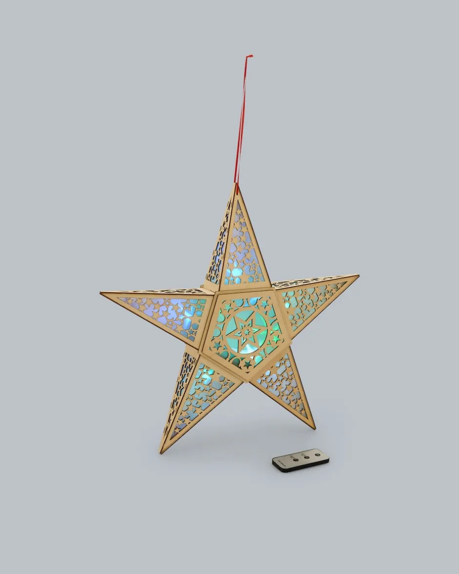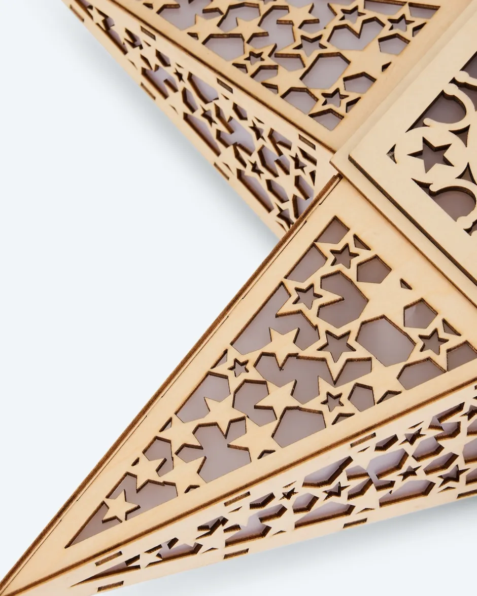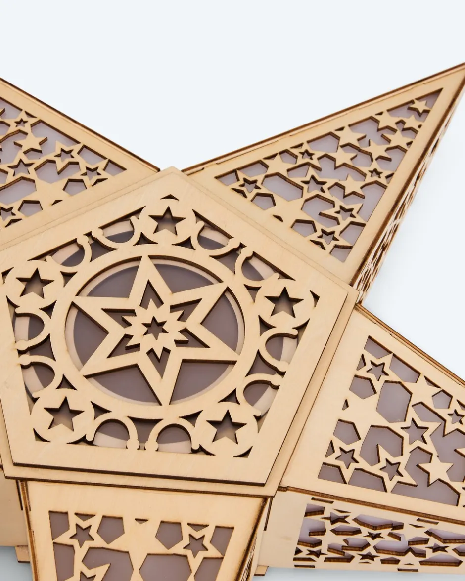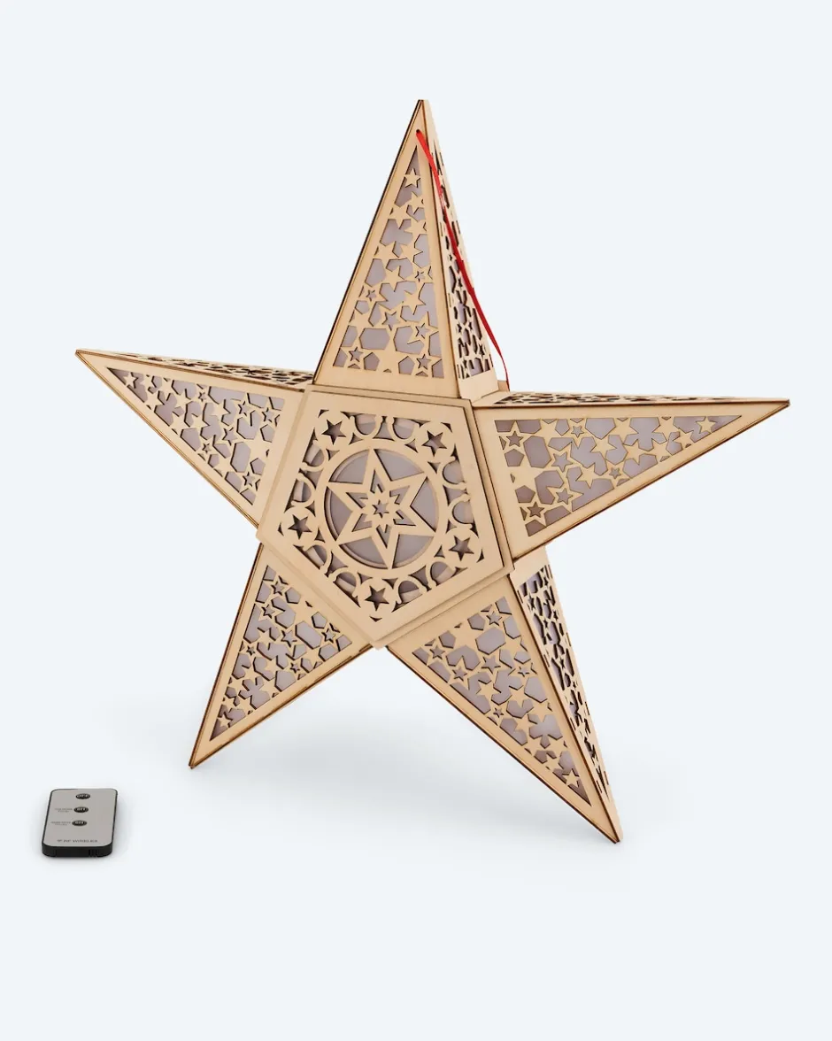Leuchtender LED-Holzstern mit Holgrammfolie