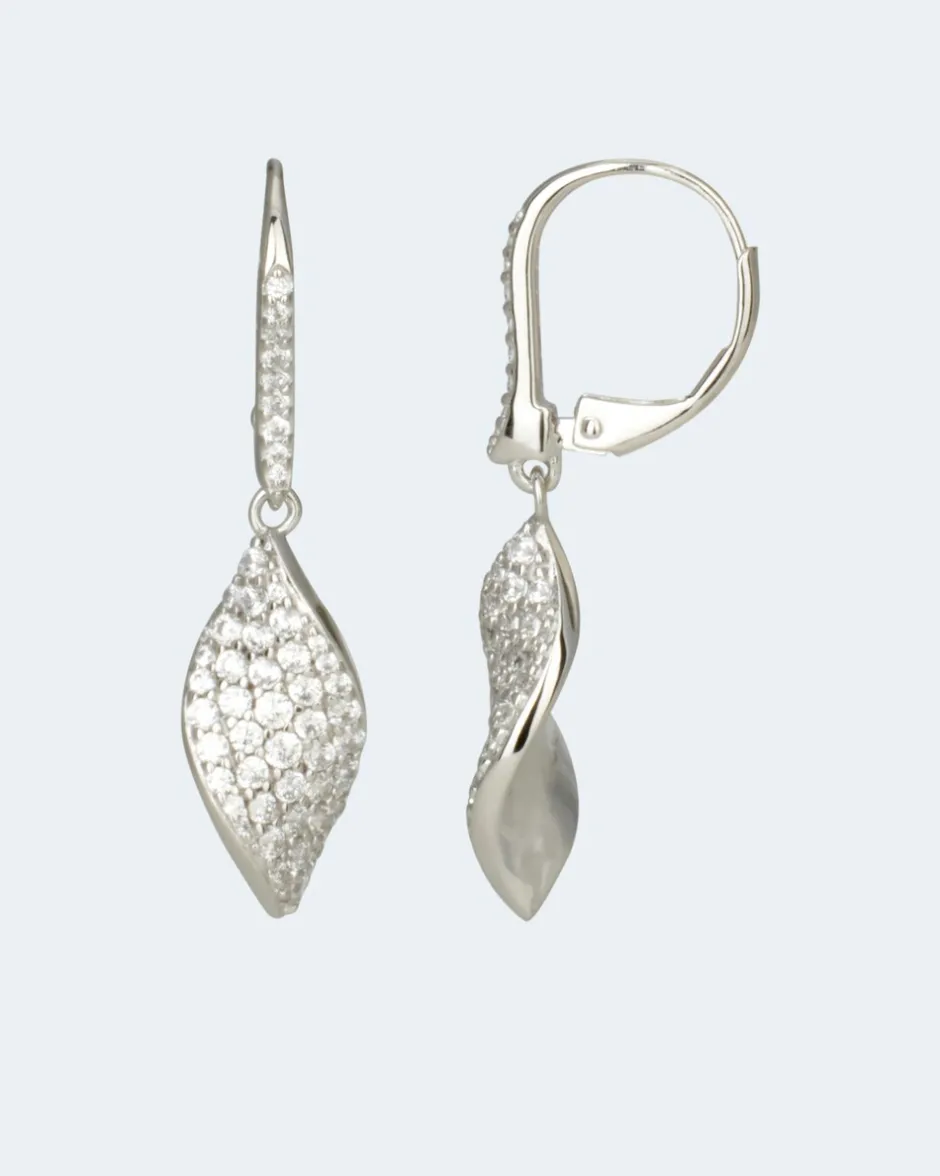 Mit diesen Ohrhängern aus 925er Sterlingsilber tragen Sie eleganten Ohrschmuck, der dank des üppigen Zirkonia-Besatzes hinreißend funkelt. Sie können wählen, ob Sie Ihren neuen Schmuck in Gelbgold- oder Weißgold-Opik wünschen. Beide Varianten sind auf Hochglanz poliert und harmonieren perfekt mit den 106 weißen Zirkonia. Die runden Zirkonia sind facettiert und glitzern fast so schön wie echte Brillanten. Die Glitzersteine sitzen auf der Klappbrisur und auf den in sich gedrehten Elementen darunter. Ein aufwendiges Design voller femininer Anmut!