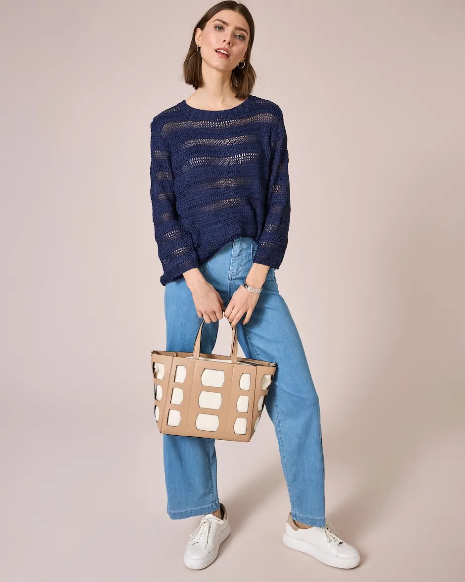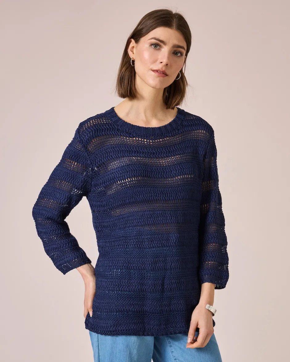 Das streichelzarte Acryl-Gewebe in bester Strickqualität macht den Pullover aus der neuen Fiora Blue Kollektion zu einem echten Wohlfühl-Teil. Auch optisch überzeugt er durch sein entspanntes Grobstrick-Design. Seinen besonderen Look erhält der jugendlich wirkende Style durch die lockere Fadenspannung des verarbeiteten Bändchengarns im Querstreifen-Design. Durch das edle Design in zwei trendigen Wahlfarben ist Ihr neuer Pulli außerdem ein begabtes Kombitalent. Optimal zur Jeans, aber auch mit vielen anderen Hosen ein echter Hit. Probieren Sie es aus.