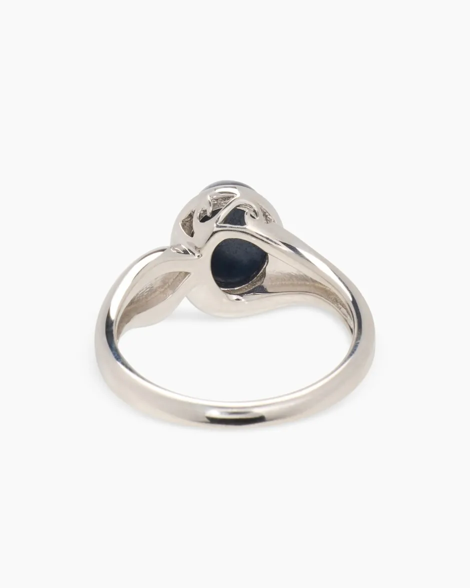 Ein großer Sternsaphir in sattem Dunkelblau bildet den unwiderstehlichen Blickfang bei diesem Silberring. Der eindrucksvolle Saphir ist im Cabochon veredelt, durch diesen glatten Schliff kommen sein verlockender Schimmer und die geheimnisvolle Maserung optimal zur Geltung. Der indische Sternsaphir ruht in einer dezenten Zargenfassung und begeistert nicht nur durch seine Präsenz, sondern auch durch ein Edelsteingewicht von soliden 2,58 Carat.