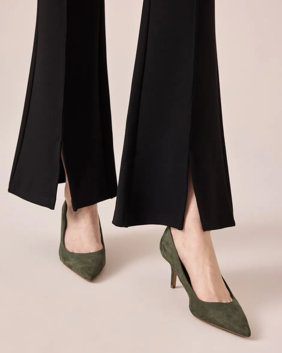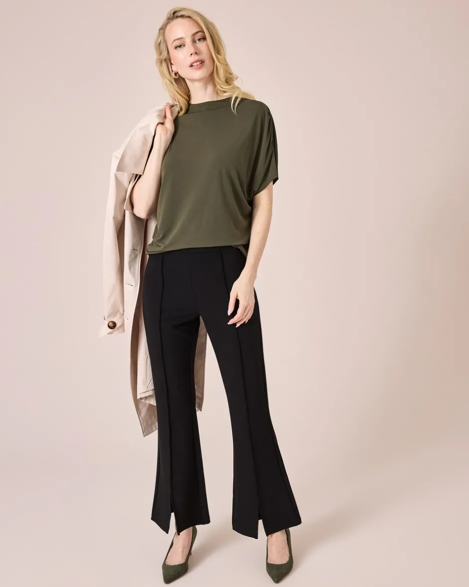 | Schnittform: | Bootcut: schmaler Schnitt an Oberschenkel und Knie – ausgestellter Saum | |