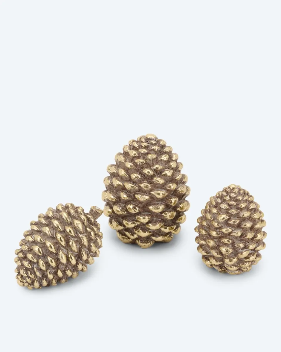 Das Zapfen-Trio aus robustem Polyresin ist eine tolle Dekoration – nicht nur im Herbst. Die Zapfen mit edlen Metallic-Akzenten sind im Antik-Look gearbeitet und verwandeln zum Beispiel eine Tafel in einen stilvollen Blickfang. Die Zapfen eignen sich aber auch, um Ihr Fensterbrett oder hübsche Blumenschalen zu verzieren. In jeden Fall sind sie ein Highlight für jeden Raum.
