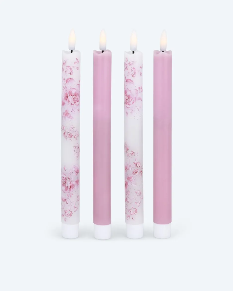 Lieferumgang: | 4 LED-Stabkerzen (2x mit Blütenprint, 2x uni) Batterien nicht im Lieferumfang enthalten. Benötigt werden 8 AAA Batterien. | |