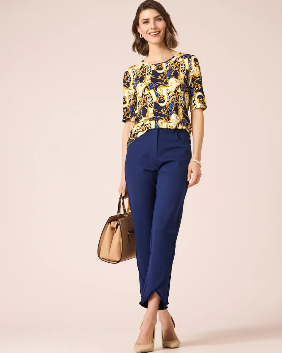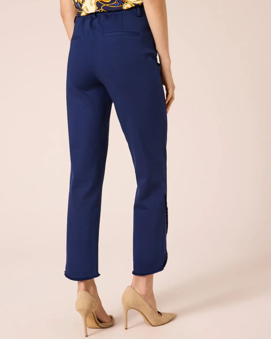 Mit dieser schicken Hose gönnen Sie sich einen tollen Allrounder für jeden Tag. Geschnitten in angesagter 7/8-Länge wirkt diese Hose betont modern, umso mehr durch die trendaktuellen Farbvarianten. Ein toller Blickfang ist der aufwendige Beinabschluss mit überkreuztem Saum und Fransenkanten. Und auch der Tragekomfort passt – dank teilelastischem Bund und leichter Stretch-Qualität. Von Alfredo Pauly.