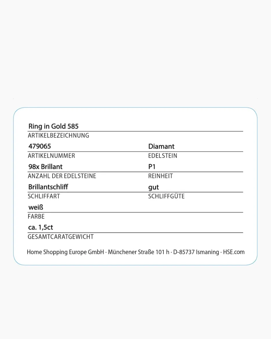 Natürlich sind die wertvollen Steine nur in feinstes 585er Gelbgold gefasst. In dieser Hinsicht gehen wir keine Kompromisse ein. Deshalb werden unsere Schmuckwaren von unserer Qualitätssicherung und seitens des Lieferanten strengsten Prüfprozessen unterzogen. Sie beinhalten Prüfungen auf Konformität mit den Bestimmungen der Schweizer Edelmetallkontrollgesetzgebung.