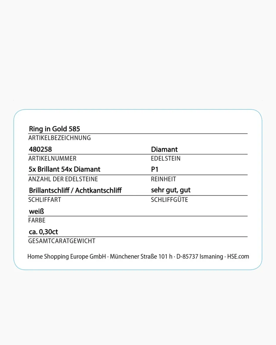 | Edelsteine: | 54x Diamant, weiß 5x Brillant, weiß insgesamt ca. 0,30 ct | |