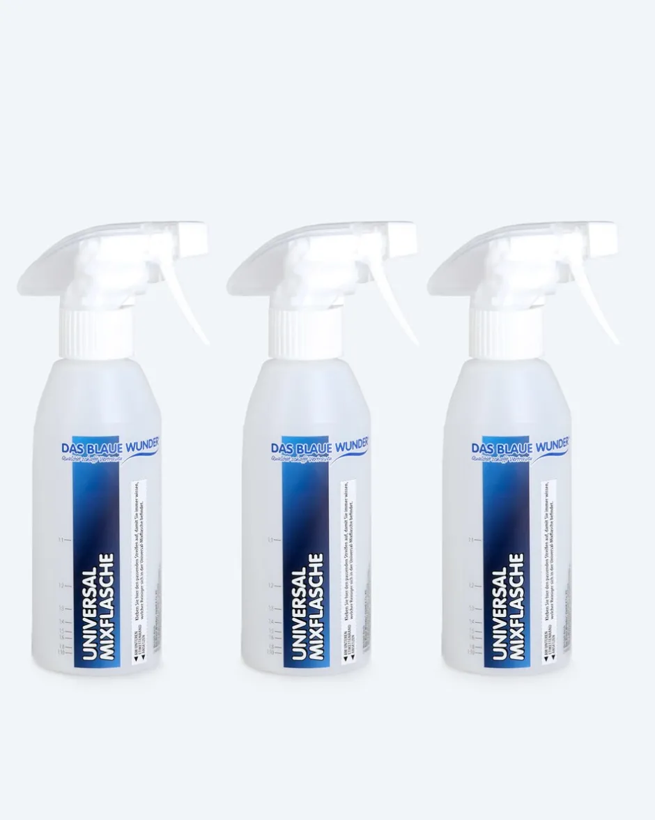 | Lieferumfang: | 3x 250 ml Das blaue Wunder Mixflasche inkl. Sprühkopf, 2 Stickerbögen | |