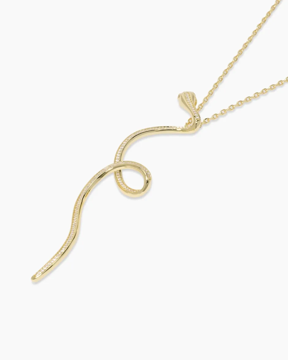 Mit diesem Schmuck-Ensemble aus Kette und Schlangenanhänger setzen Sie Ihr Dekolleté sexy in Szene. Beide Teile sind aus Messing geschmiedet und stehen Ihnen palladiniert im kühl-eleganten Platinlook und gelbvergoldet mit warmem Goldschimmer zur Verfügung. Die Kette ist ca. 45 + 5 cm lang und wird mit einem Karabiner verschlossen. Der eindrucksvolle Schlangenanhänger ist mit 129 weißen Zirkonia verziert, die bei jeder Ihrer Bewegungen ein glitzerndes Lichterspektakel vollführen.