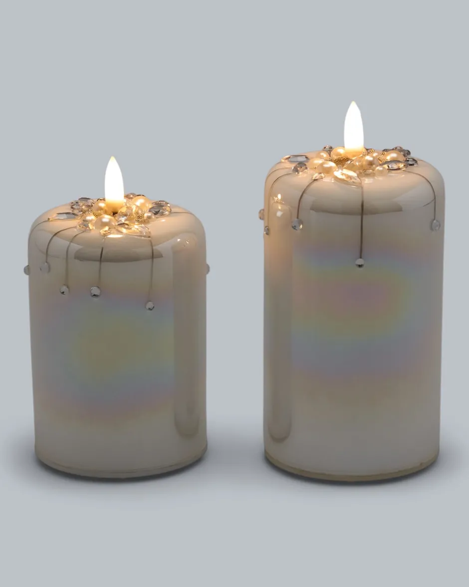 Lieferumfang: | 2 Glaskerzen mit LEDs | |