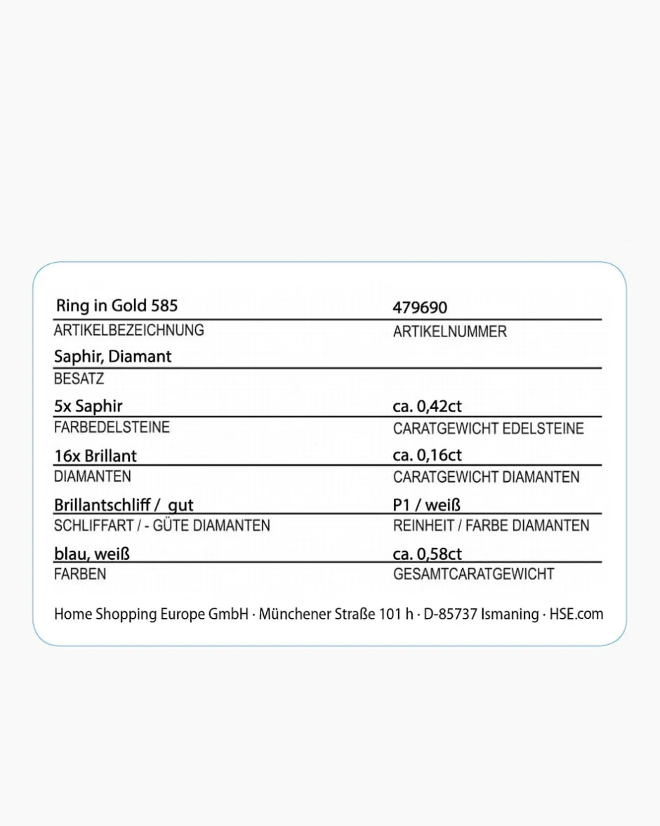 | Edelsteine: | 4x Saphir, blau 1x Saphir, blau | |