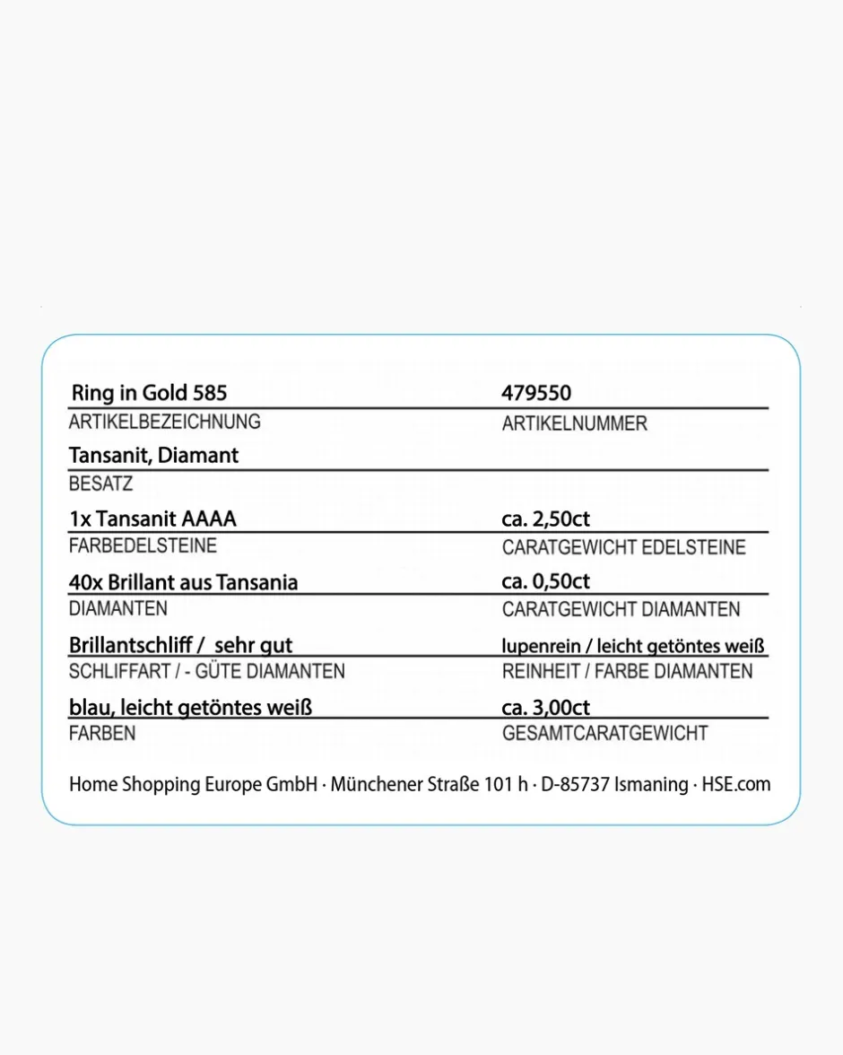 Beeindruckend und umwerfend schön – der Tansanit in AAAA-Farbqualität ist ein atemberaubender Blickfang. Er sitzt im Zentrum des Ringkopfes und wird rechts und links auf der Ringschiene von 40 Brillanten in getöntem Weiß begleitet, die sein tiefes Blau zusätzlich unterstreichen. Der warme Schimmer der Ringschiene aus 585er Gelbgold ist ein wunderbarer Kontrast zu den kühlen Farben der Edelsteine im Ringkopf. Die Brillanten sind lupenrein und verfügen über einen sehr guten Schlaff – das ist Luxus pur aus der Schmucklinie „Precious Tales“. Alle Edelsteine sitzen in Krappenfassungen. Mit der harmonischen Komposition aus Edelsteinen und Gold sind Ihnen bewundernde Blicke sicher. Bereichern Sie Ihre Schmuck-Kollektion um dieses wertvolle Designerstück.