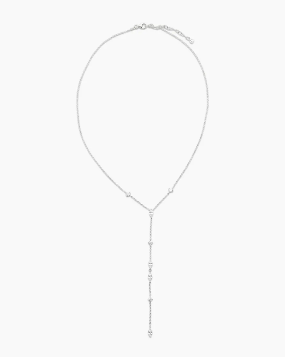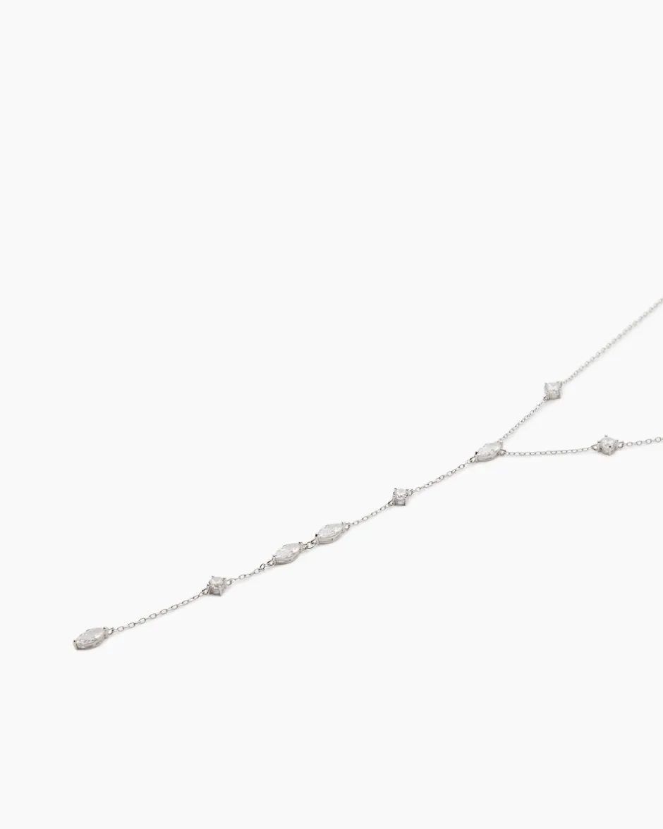 Das Y-Collier ist aus Silber 925 gearbeitet. Sie haben die Wahl, ob Sie Ihr neues Collier lieber in kühl-eleganter Weißgold-Optik wünschen oder mit warmem Goldschimmer. Beide Varianten sind auf Hochglanz poliert. Zusätzlich ist das stylische Accessoire mit acht weißen Zirkonia verziert. Die Zirkonia sind rund und Navette-förmig. Der Facettenschliff sorgt dafür, dass die Zirkonia spektakulär funkeln und glitzern. Die Kette ist ca. 45 cm lang mit einer Verlängerung von 5 cm und zieht alle Blicke auf Ihr Dekolleté. Moderner Silber-Schmuck, der Ihrem Look das gewisse Etwas verleiht.