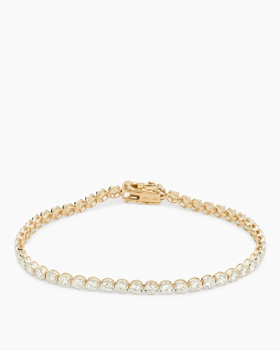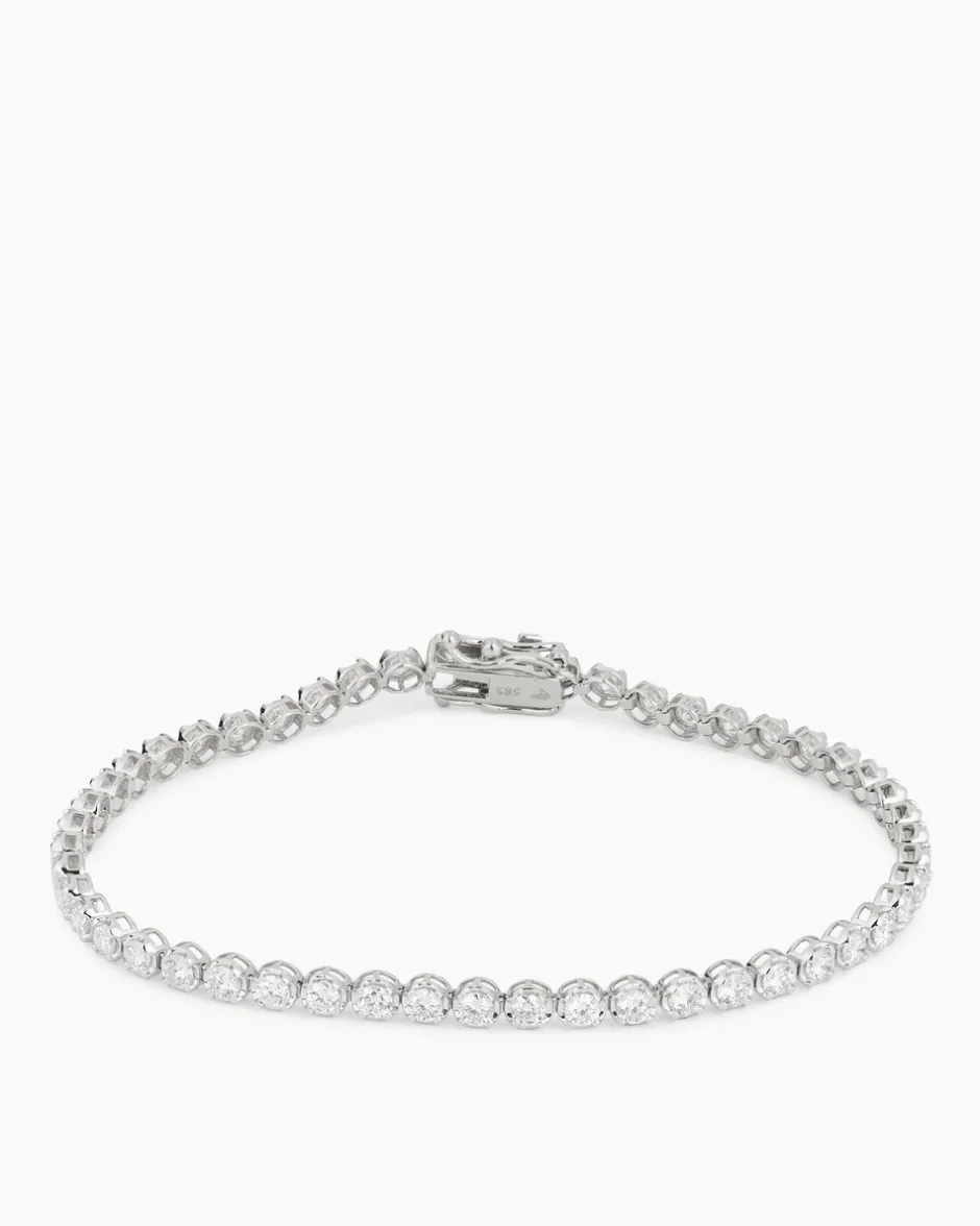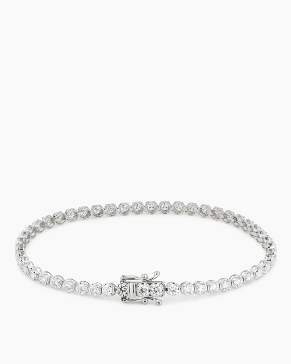 Das luxuriöse Marvin Kulik Armband aus hochglanzpoliertem 585er Gelb- oder Weißgold schmiegt sich flexibel um Ihr Handgelenk. Es ist mit 50 runden Brillanten in strahlendem Weiß ausgefasst. Die Edelsteine verfügen über die Reinheit SI1 und haben eine gute Schliffqualität. Im Bereich der Krappenfassungen ist das Edelmetall rhodiniert, was die Brillanten noch intensiver funkeln lässt. Als Verschluss dient ein Kastenschloss mit zwei Sicherheitsachten. So sitzt Ihre neue Preziose sicher an Ihrem Handgelenk. Das ist stilvoller Schmuck für Ladies mit Klasse.