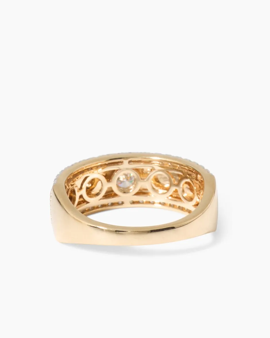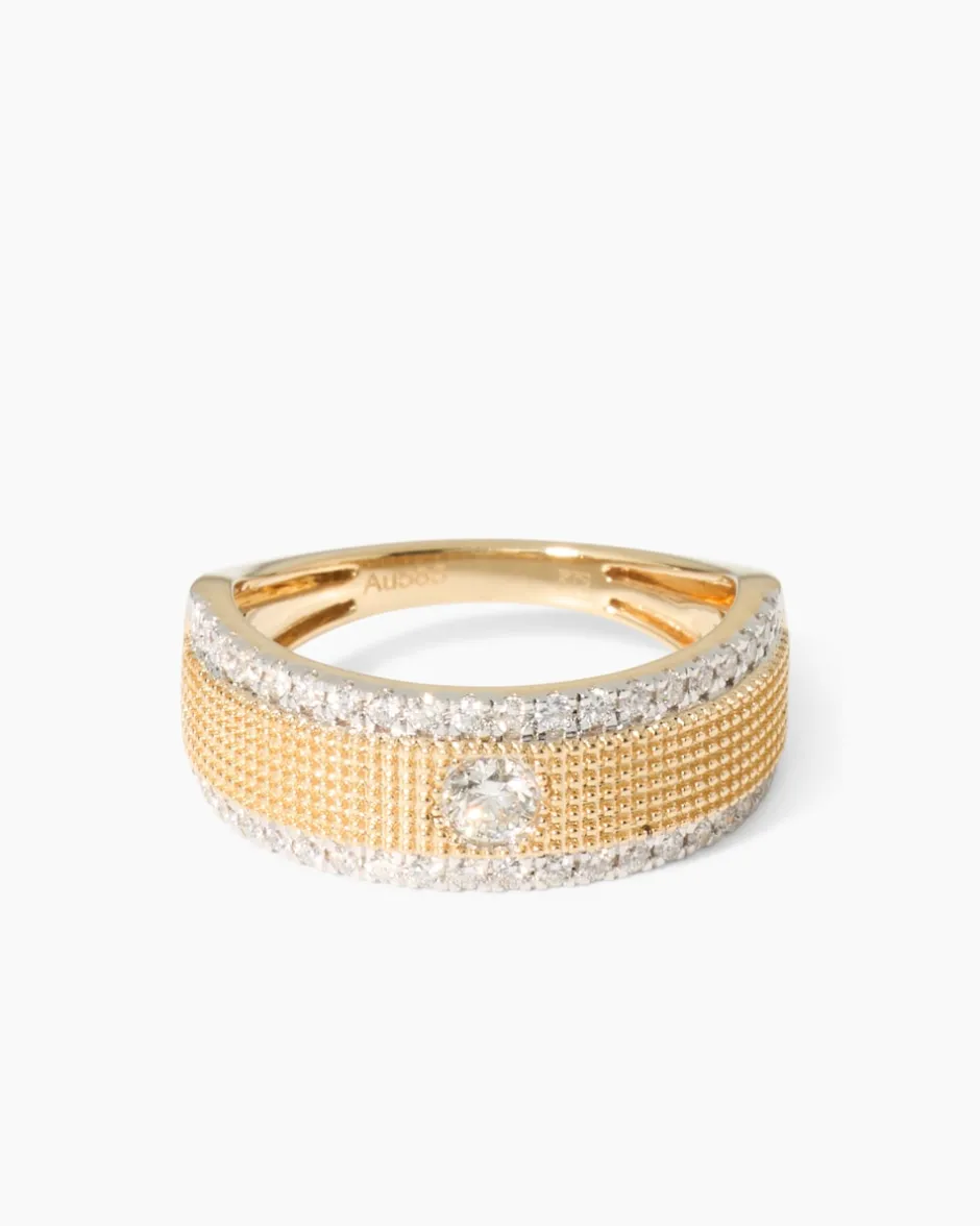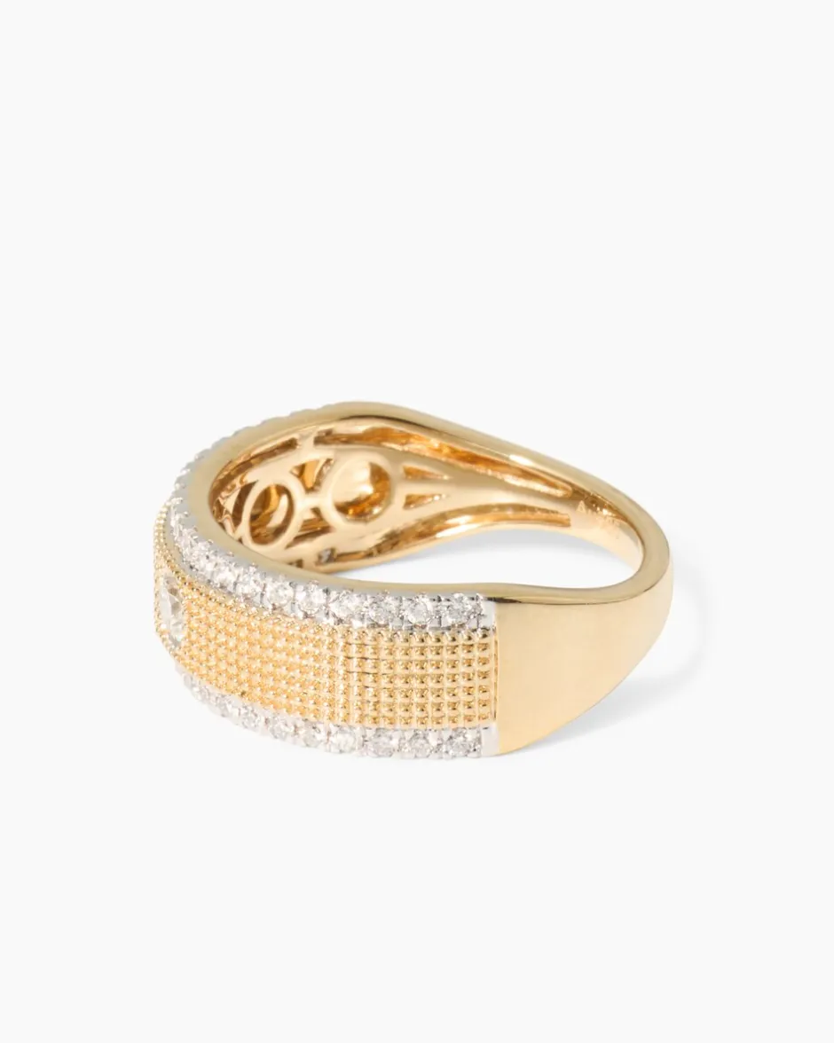 Der Diamond Collection Ring im Banddesign erhält durch seine geometrischen Formen ein interessantes Update. Damit strahlt er Eleganz und Raffinesse aus. Die 41 weiß funkelnden Brillanten haben die Reinheit P1 und ein Edelsteingewicht von insgesamt 0,50 ct. Eingebettet sind die noblen Edelsteine in warmes 585er Gold mit Hochglanzfinish. Im Bereich der Fassungen ist das Edelmetall rhodiniert, was die Brillanten noch intensiver erstrahlen lässt. Ob als Freundschaftsring bestellt oder Geschenk an sich selbst – dieser unvergänglich schöne Brillantschmuck wird für viel Freude sorgen.