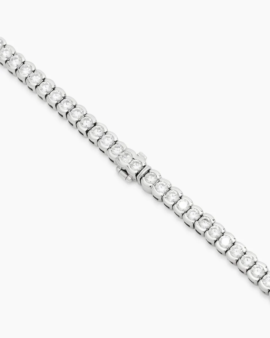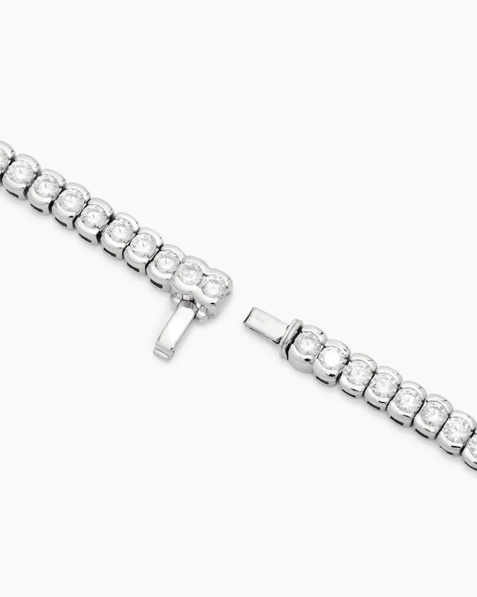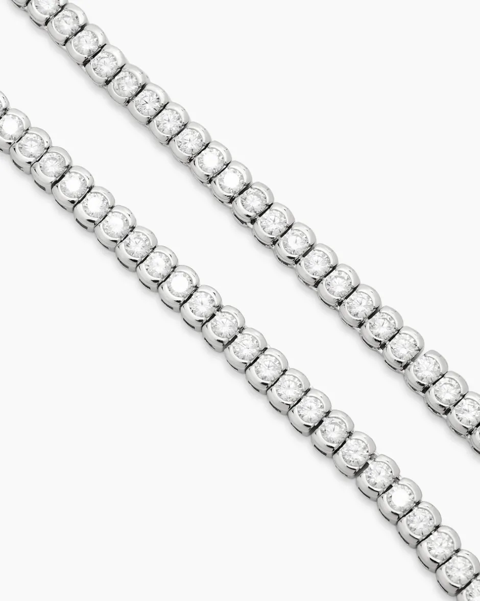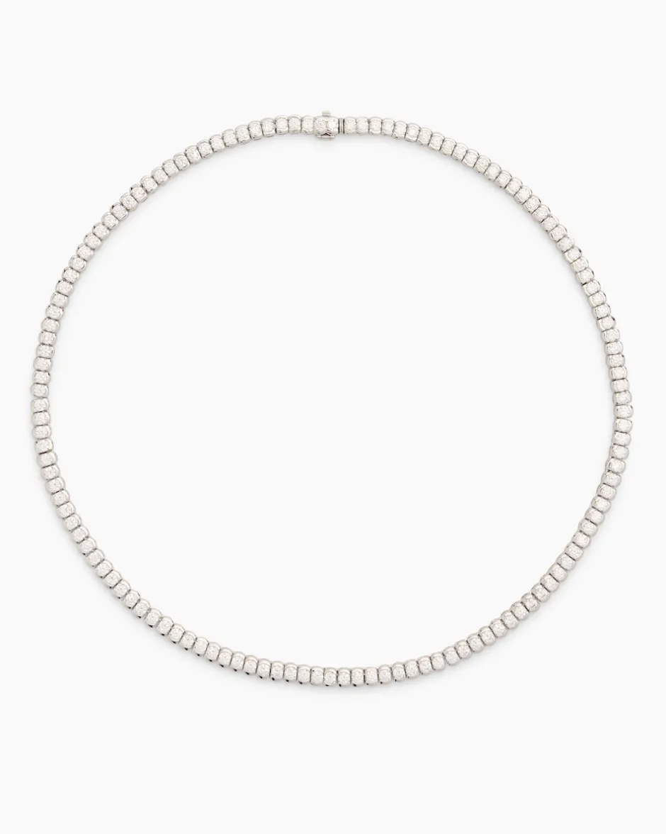Dieses einzigartige Collier aus der Schmucklinie „Pfeffinger Silberdesign“ ist eine gelungene Liaison aus zeitlosem Design und Qualitäts-Schmuck made in Germany. Die Kette in schlicht-eleganter Optik ist mit 141 großen weißen Zirkonia in Zargen ausgefasst. Alle Steine sind sorgfältig im Brillantschliff veredelt, dadurch funkeln die Kristalle genauso verheißungsvoll wie ihre echten Geschwister. Der Halsschmuck ist 45 Zentimeter lang und schmiegt sich wie ein funkelndes Band um Ihren Hals. Freuen Sie sich auf dieses Schmuck-Highlight für jedes Dekolleté.