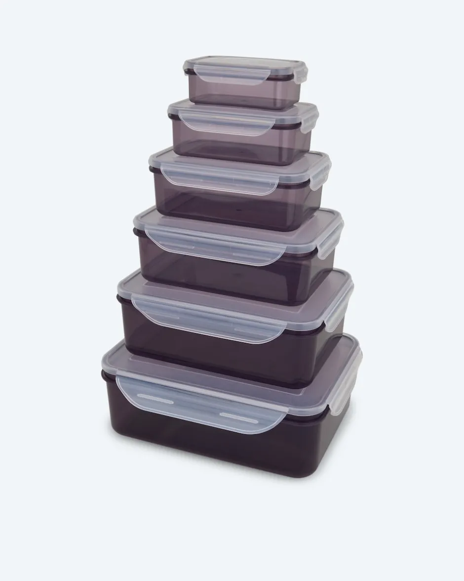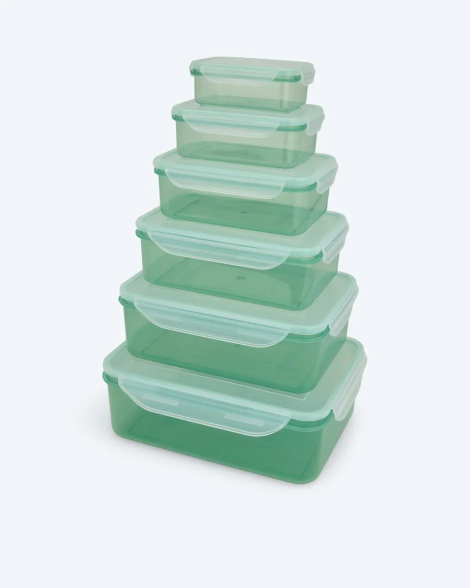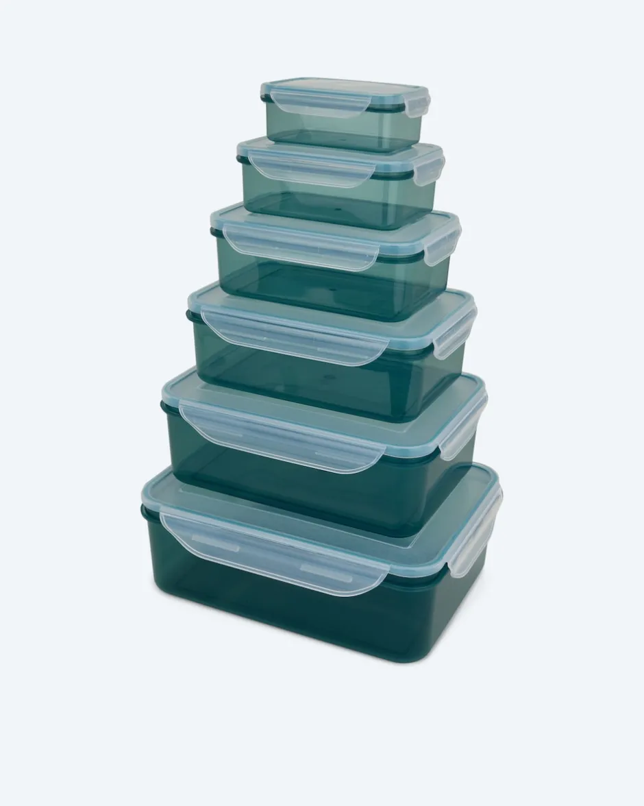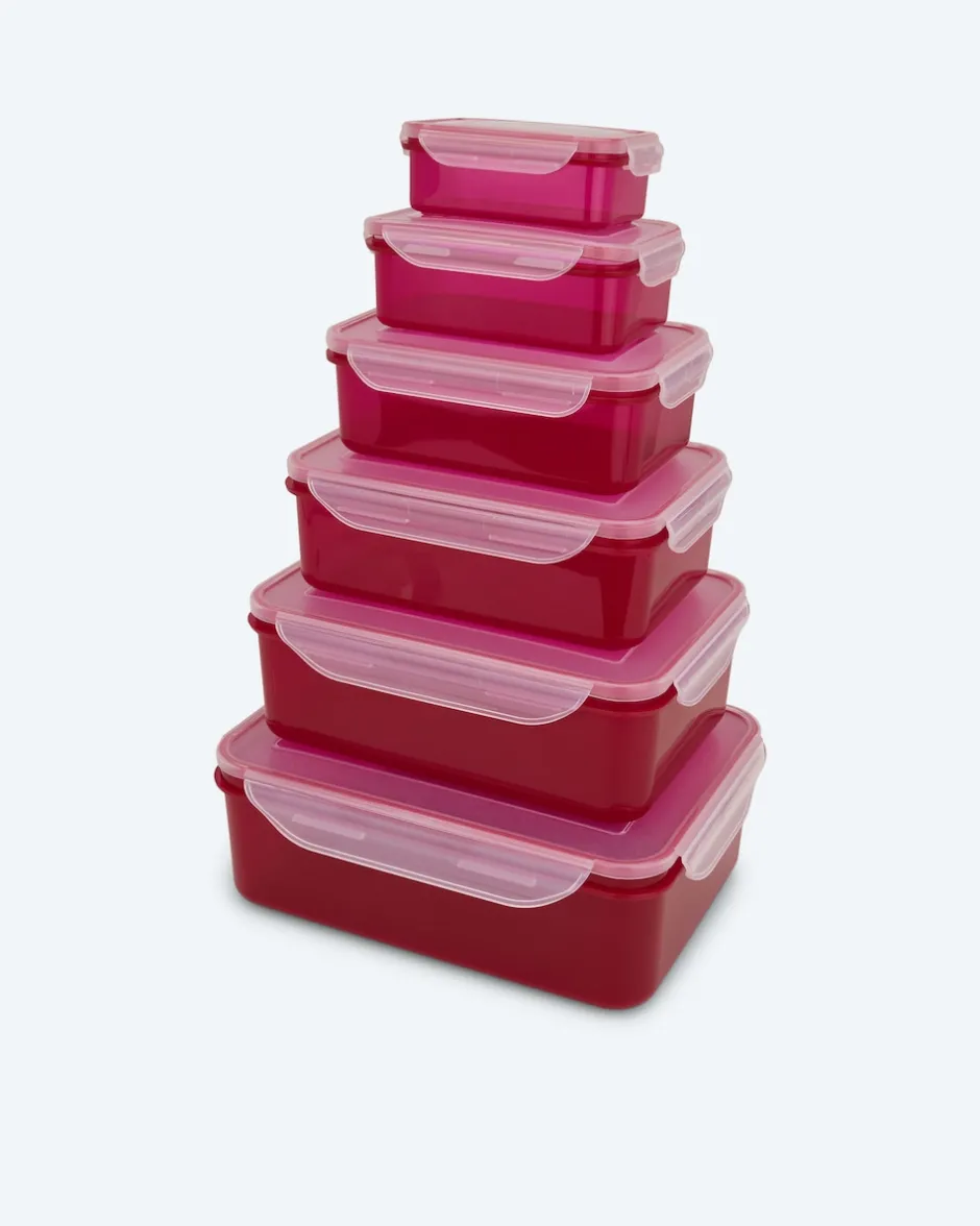 Mit diesem praktischen 6er-Set von Cucinella haben Sie immer die passende Frischhaltebox zur Hand. Jeder Behälter hat eine andere Größe und kann luftdicht verschlossen werden. So lassen sich Aufschnitt, Müsli, Snacks oder Essensreste hygienisch und praktisch aufbewahren. Die Dosen sind mikrowellen- und gefrierfachtauglich und können in der Spülmaschine gereinigt werden. Bestellbar in verschiedenen Farbvarianten.