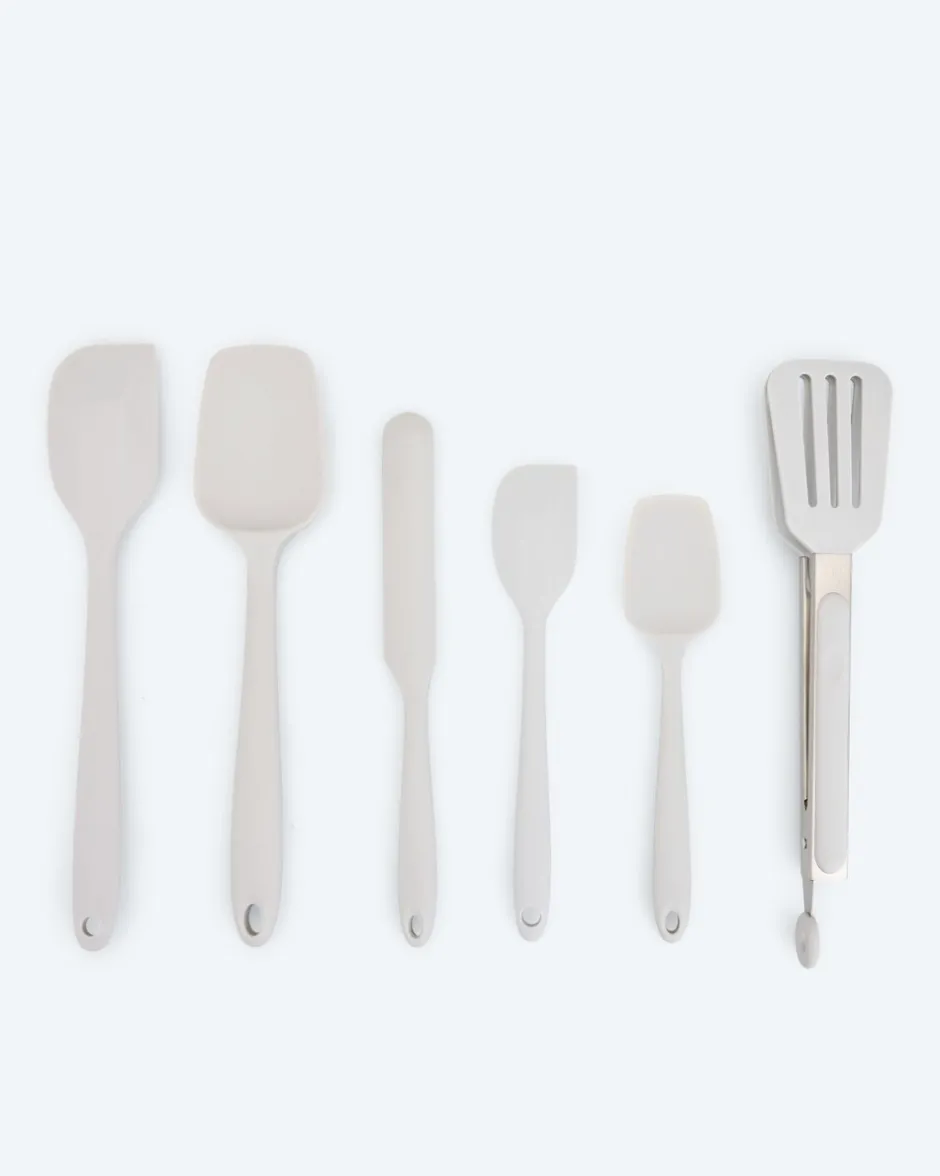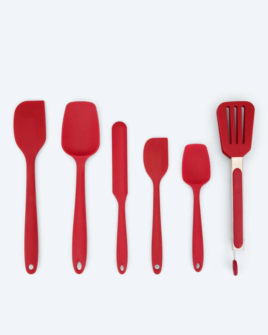 Hier kommt ein tolles Küchenhelfer-Set für alle, die gerne in der Küche kreativ werden. Das 6-teilige Set enthält einen Schaber, eine 2-in-1-Silikonzange sowie vier Spatel in unterschiedlichen Größen und Formen. Ob zum Kochen oder Backen – die hochwertigen Werkzeuge sind aus hitzebeständigem Silikon gefertigt und den verschiedensten Aufgaben gewachsen. Sie lassen sich leicht reinigen und nach Gebrauch platzsparend verstauen. Was für’s Auge: Das Cucinella Set ist in zwei Farbvarianten erhältlich.