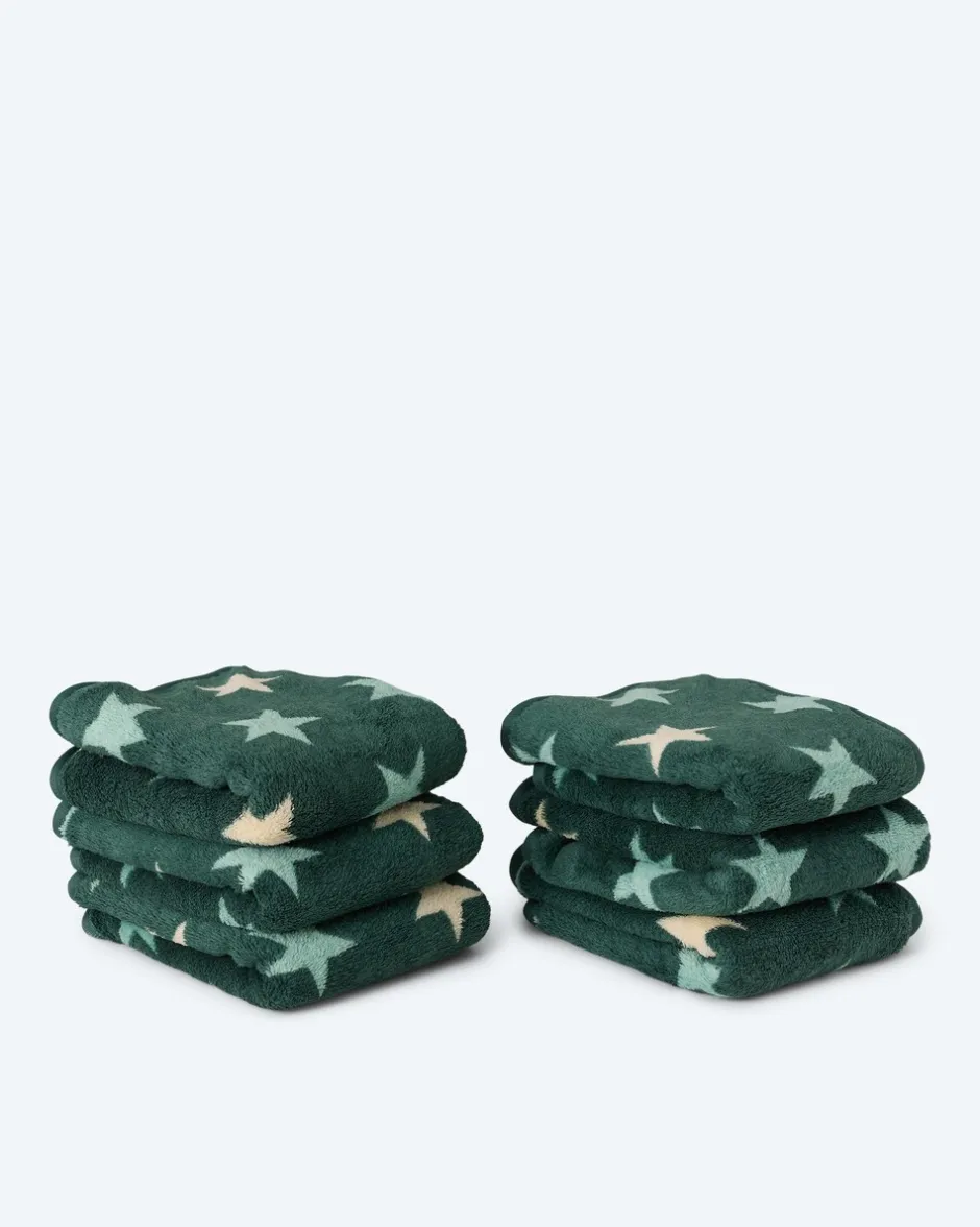 Das herrlich flauschige Material dieser Handtücher schmiegt sich streichelzart und kuschelweich an Ihre Haut. Dabei sind sie super saugstark, antistatisch und absolut pflegeleicht. Sie erhalten hier sechs Gästehandtücher in den klassischen Maßen 30 x 50 cm. Alle mit Allover-Sternedruck und in drei zeitlosen Farben zur Wahl. Übrigens auch eine tolle Geschenkidee.