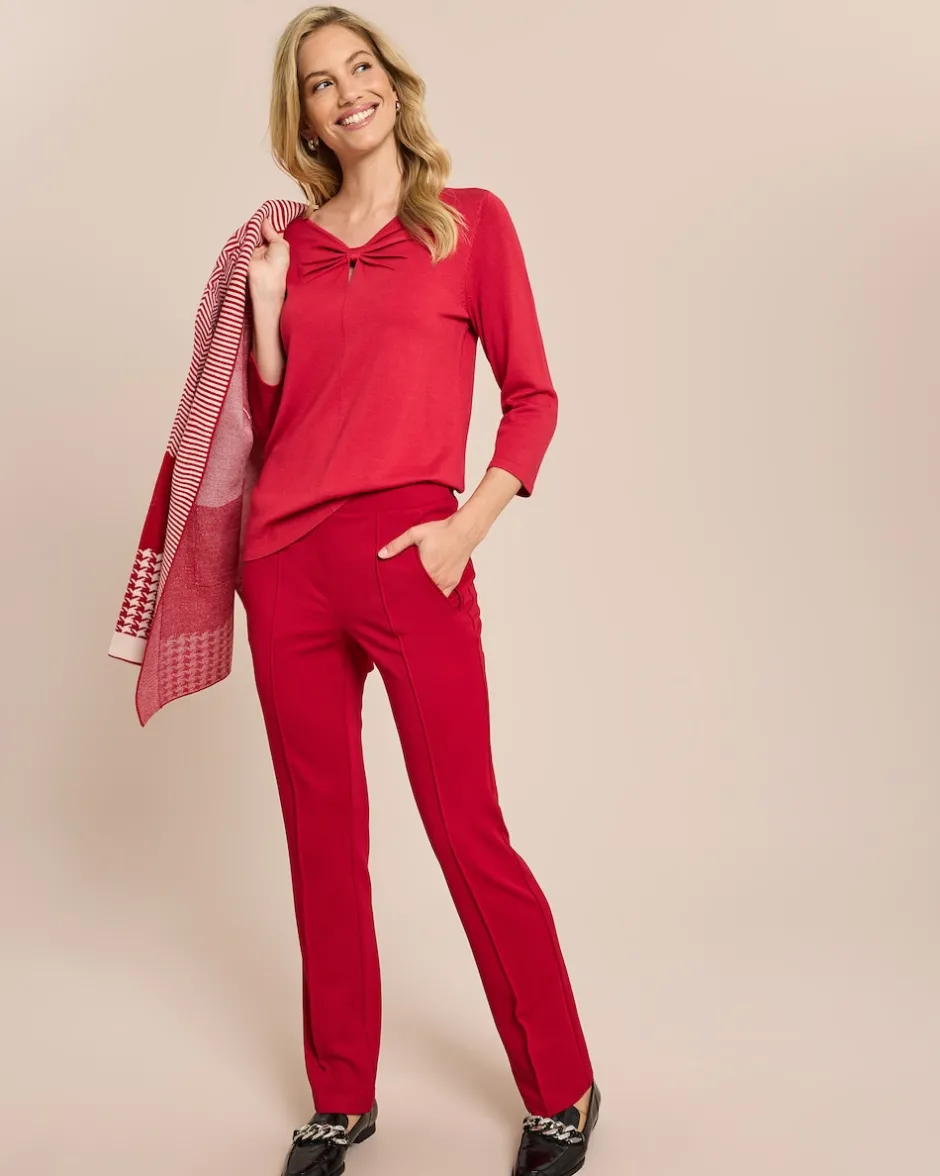 | Passform: | Schlupfhose in einer Glanz-Rib-Qualität | |