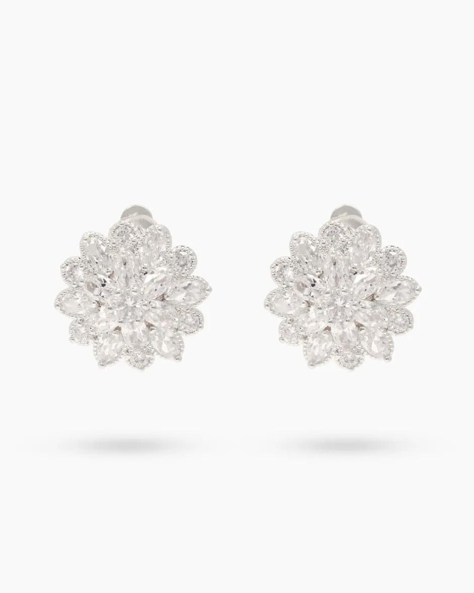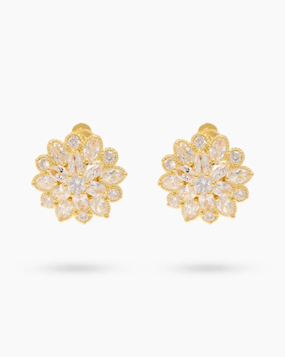 Funkelnde Zirkonia-Ohrclips in Blütenform