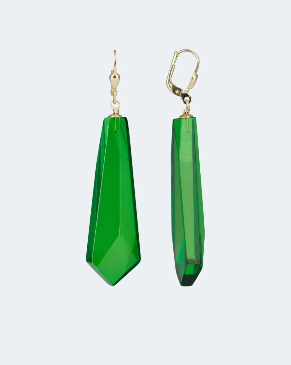 Wann immer Sie diesen raffinierten Ohrschmuck tragen, haben Sie gute Laune. Die Gold-Ohrhänger sind mit Bernsteinen in frischem Grün ausgefasst. Die Edelsteine stammen aus der Karibik und haben die Sonne quasi eingeschlossen.