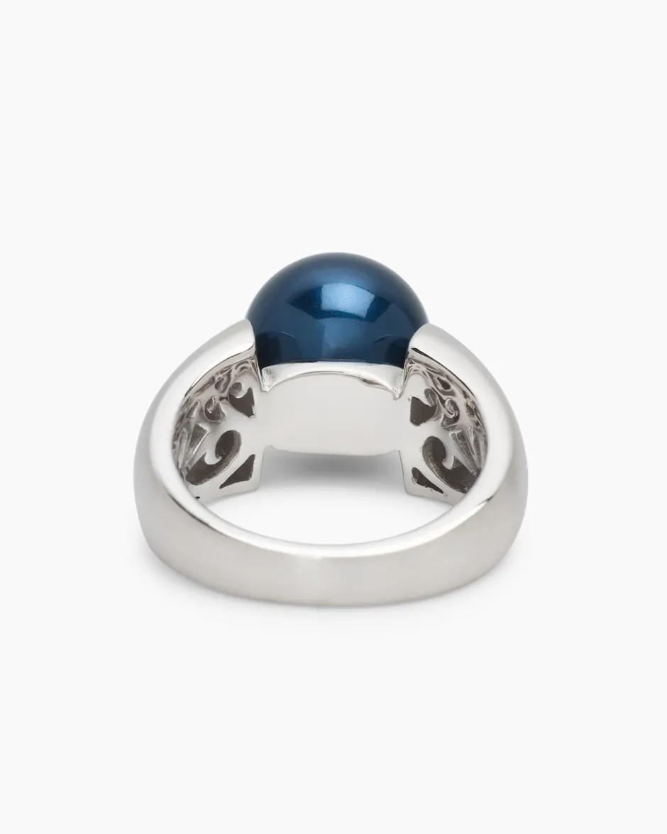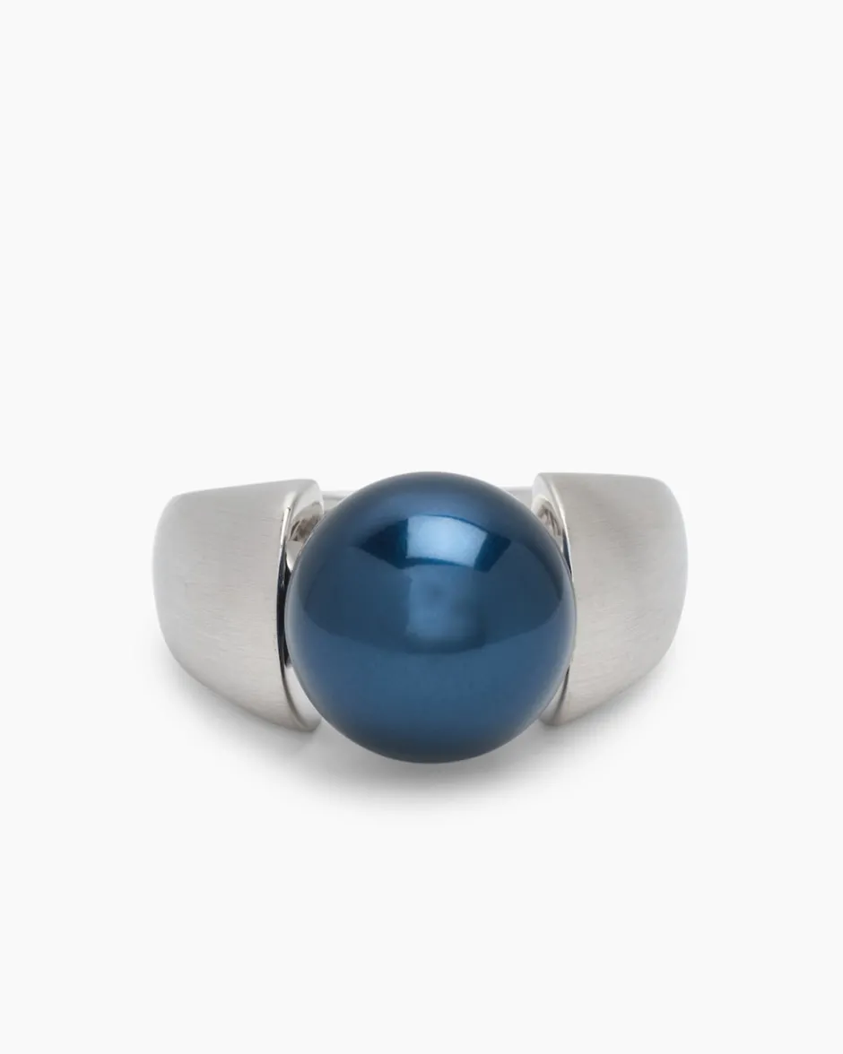 Sie können den Ring aus Silber 925rhodiniert in herrlich glänzender Weißgoldoptik oder gelbgoldplattiert mit warmem Goldschimmer bestellen. Zusätzlich ist die Oberfläche hochglanzpoliert bzw. mattiert. Mittig auf der Ringschiene sitzt eine runde Muschelkernperle und schillert in ihrer ganzen Pracht. Je nach gewählter Legierung ist die Perle nachtblau oder peacock-farben. Die Ringschiene ist im Verlauf gearbeitet, sodass der Ring bequem am Finger sitzt und Sie mit seiner makellosen Schönheit erfreut.
