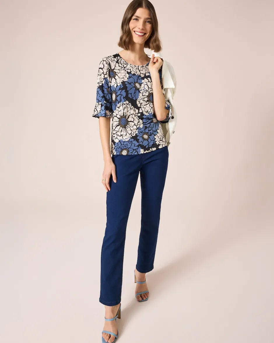 Mit diesem Print-Shirt kommt Frühlingsflair in den Look. Das stilisierte Blumenmuster ist in tollen aktuellen Farben erhältlich und lässt sich dadurch besonders gut kombinieren. Der Schnitt ist feminin mit rundem Ausschnitt und hübschen Volantbündchen an den Ärmeln. Ob elegant, modisch oder leger gestylt – mit diesem Shirt sind Sie immer stilvoll angezogen. Aus einer feinen, trageangenehmen Qualität.