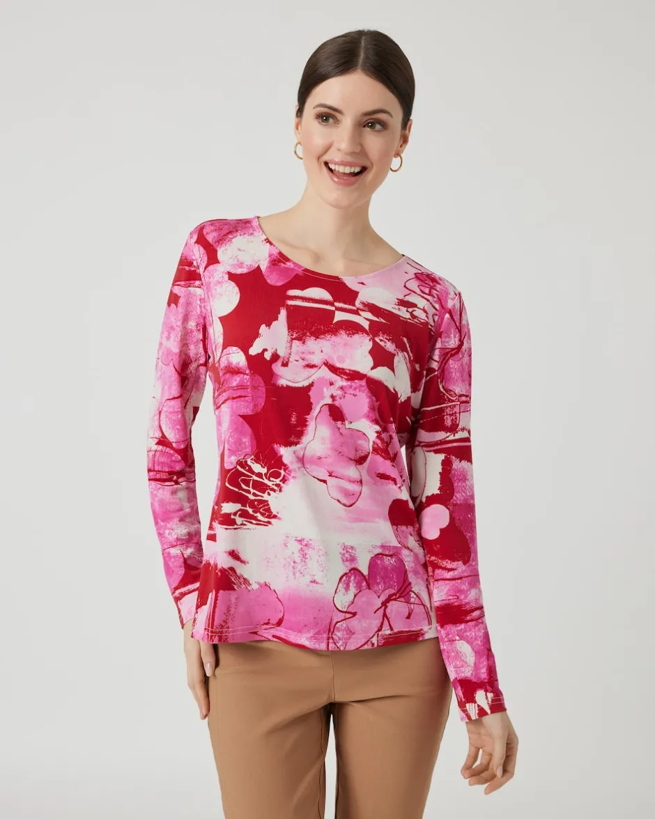 Bekommen Sie beim Anblick dieses Langarmshirts von Helena Vera auch sofort gute Laune? Der Fantasieprint in tollen Farben setzt Sie fröhlich in Szene. Dazu gibt es einen klassischen Rundhals und einen leicht taillierten Schnitt für eine schlanke Silhouette. Lieblingsjeans dazu und fertig ist ein Look, nach dem Mann sich umdreht.