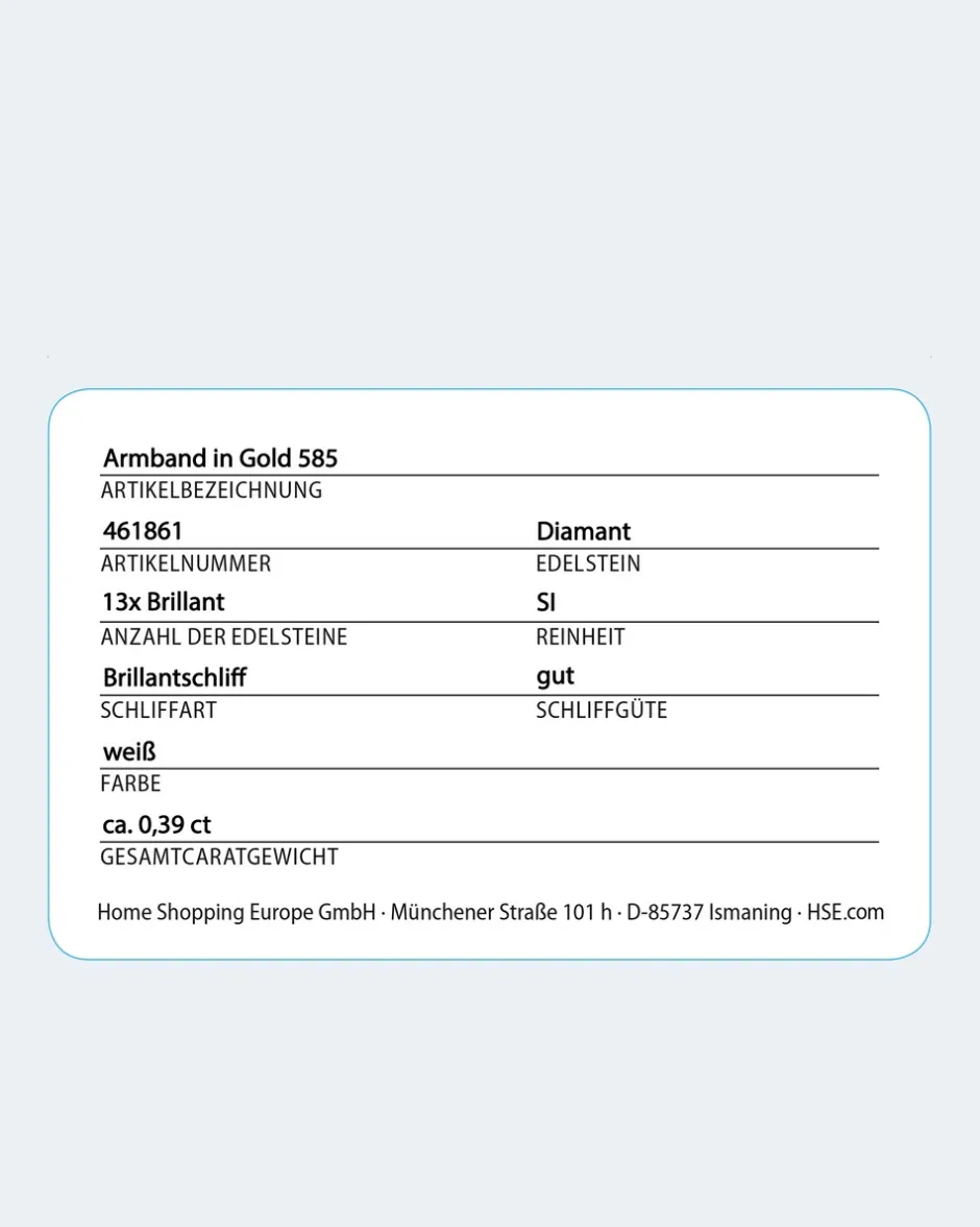 Das Brillantarmband ist 18 cm lang, lässt sich bequem um 3 cm verlängern und wird mit einem Karabiner geschlossen.