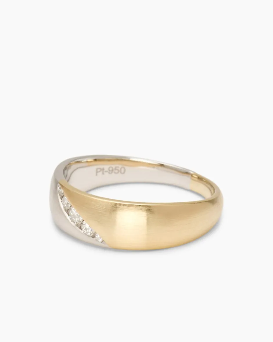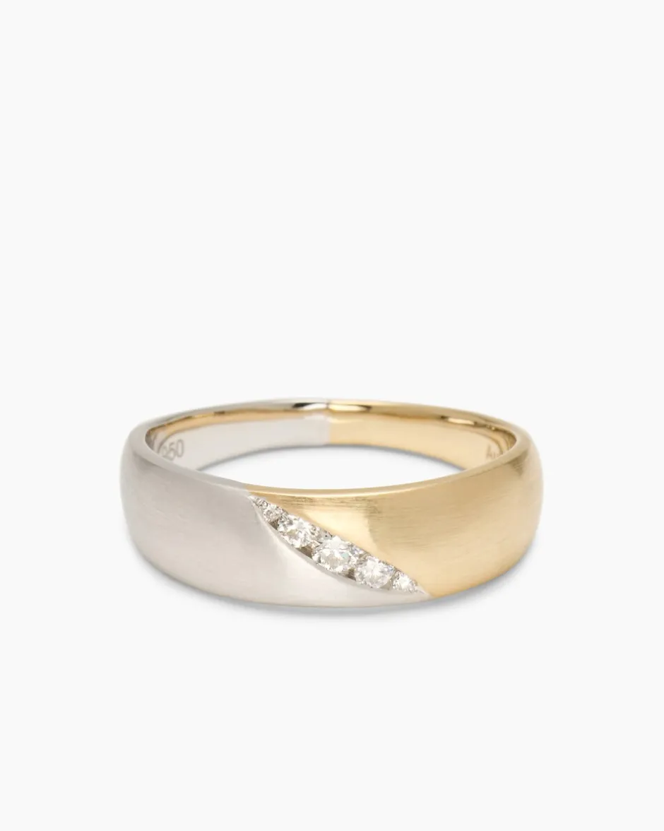 Ab und zu begegnet uns ein Schmuckstück, das sofort ins Auge fällt und dauerhaft im Gedächtnis bleibt. So ein Schmuckstück ist dieser sensationelle Designerring aus der Linie Diamantaire: Gelbgold in hochwertiger 585er Qualität, allerfeinstes Platin 950 und nicht zuletzt fünf lupenreine Brillanten vermählen sich hier zu einem Gesamtkunstwerk, dessen unvergängliche Präsenz Sie immer wieder aufs Neue begeistern wird. Mittig auf dem Ringkopf verläuft die diagonal angesetzte Grenze zwischen Platin und Gold. Genau auf dieser Linie sind die weißen Brillanten in einer Reihe eingefasst. Die herrlich funkelnden Steinchen in drei Größen begeistern auch durch ihre sehr gute Schliffqualität.