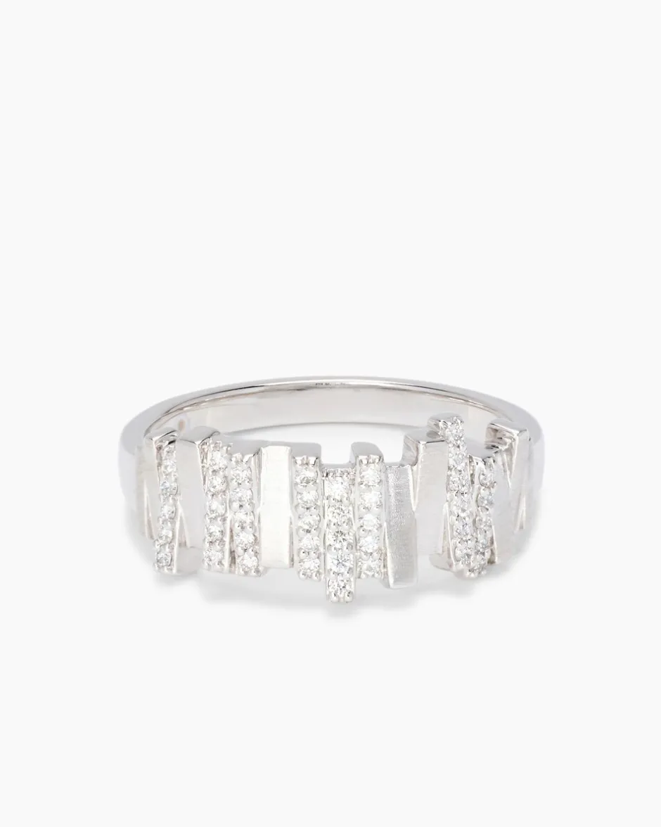 Das außergewöhnliche Design des eleganten Bandrings aus 950er Platin fällt sofort ins Auge. Der breite Ringkopf besteht aus nebeneinander gesetzten Stäbchen, die wechselweise mit den 41 lupenreinen Brillanten besetzt sind. Die stilvolle Gestaltung wirkt leicht asymmetrisch und harmonisch zugleich. Für Ihren Tragekomfort sind Ringkopf und Ringschiene innen glatt gearbeitet und schmiegen sich angenehm um Ihren Finger. Der Ring ist ein eleganter Solist, lässt sich aber auch hervorragend mit anderen Schmuckstücken tragen. Freuen Sie sich auf einen exquisiten Eyecatcher samt einem Plus an Glamour und Strahlen.