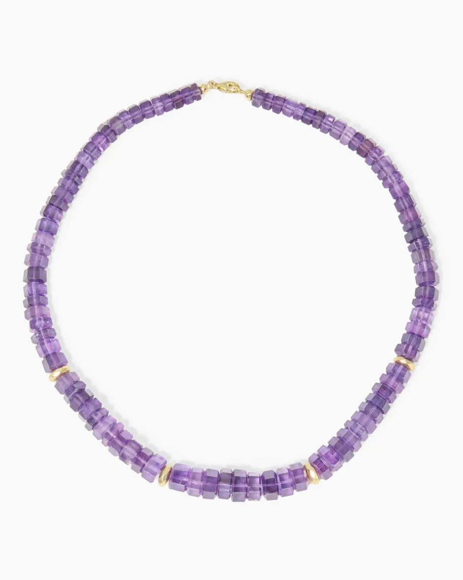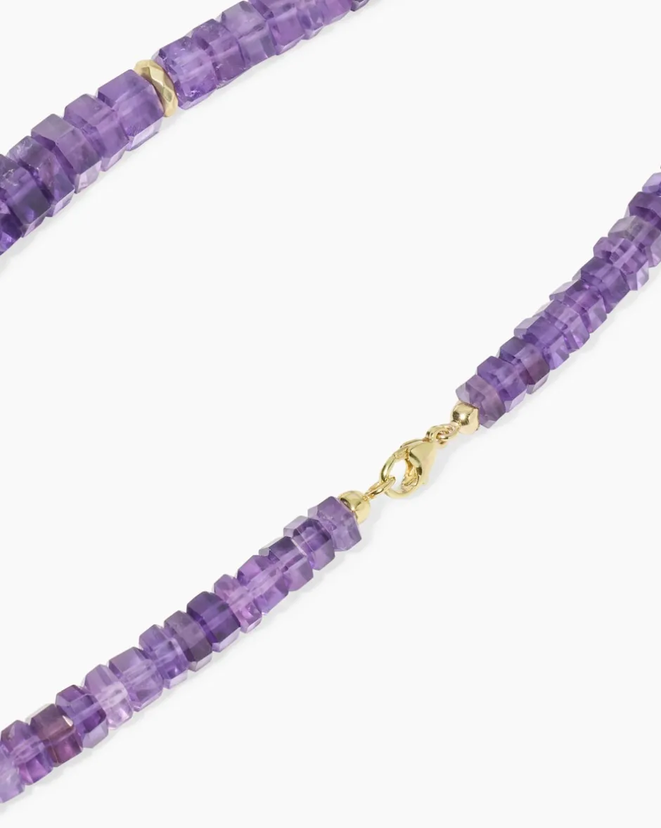 Eleganter Edelsteinschmuck hat immer eine besondere Ausstrahlung – erst recht in der Klasse dieses Colliers der Linie Sogni d’oro. Der wundervolle Halsschmuck besteht aus lilafarbenen Amethyst-Rondellen, akzentuiert durch goldfarbene Hämatit-Scheiben. Qualität bis ins Detail: Für den Karabinerverschluss wurde edles 375er Gelbgold gewählt. Freuen Sie sich auf ein Collier, das Ihren stilvollen Auftritt gekonnt vollendet.