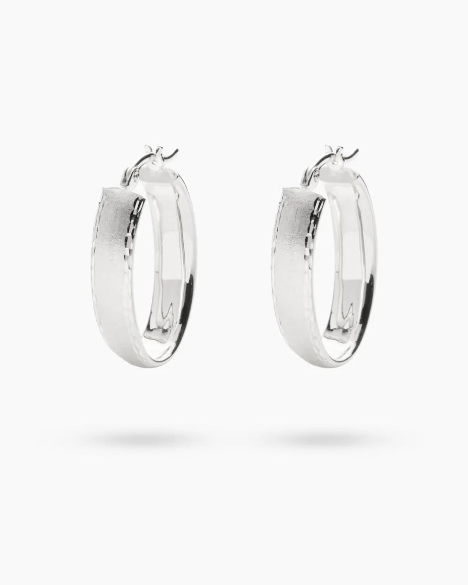 Entdecken Sie den unvergleichbaren Charme unserer Creolen: Das Design überzeugt durch die Diamantschnitte, welche das Licht wunderschön reflektieren. In 585er Gelbgold oder Weißgold gefertigt, an der Oberfläche satiniert, vereinen sie edle Materialien mit außergewöhnlichem Design. Mit ca. 2,5 x 1,7 cm Größe und einem sicheren Bügelverschluss sind sie nicht nur attraktiv, sondern auch praktisch. Wählen Sie Qualität, wählen Sie Glanz, wählen Sie diese atemberaubenden Ohrringe, die Ihr Outfit auf das nächste Level heben. Goldene Perfektion für Ihren Alltag.