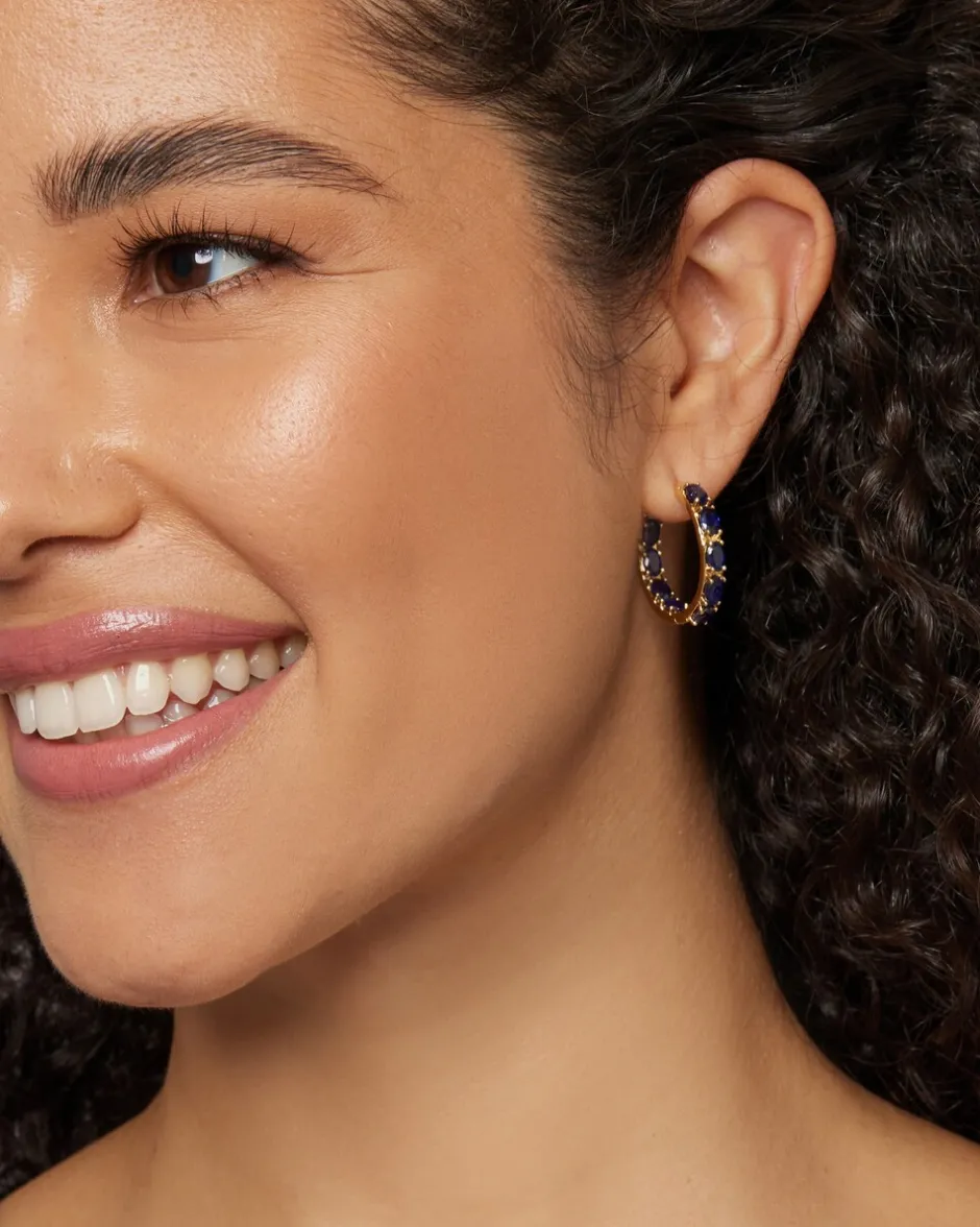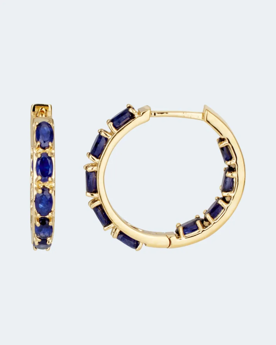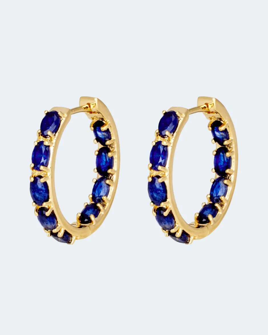 Mit ihrer tiefblauen Schönheit verströmen diese Creolen von Harry Ivens eine geradezu königliche Eleganz. Verarbeitet wurde feinstes 925er Sterlingsilber, edel vergoldet und hochglanzpoliert. Die insgesamt 18 Steine wurden sorgfältig facettiert und zieren sowohl die Vorder- als auch Innenseite der Creolen. Ein rundum bezaubernder und vielseitiger Ohrschmuck mit zeitlos elegantem Flair.